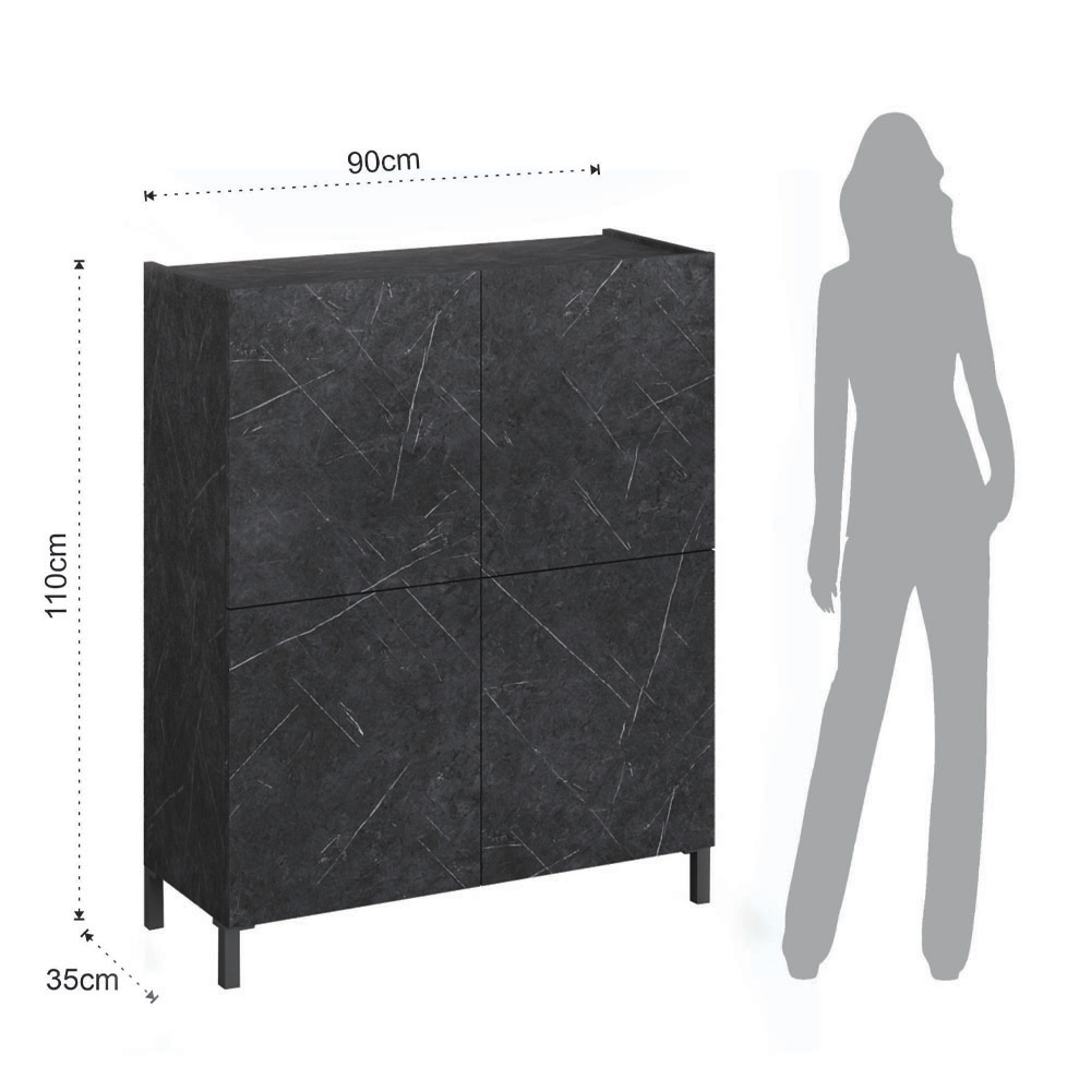 4 gångjärnsdörrar och justerbara fötter, helt och hållet