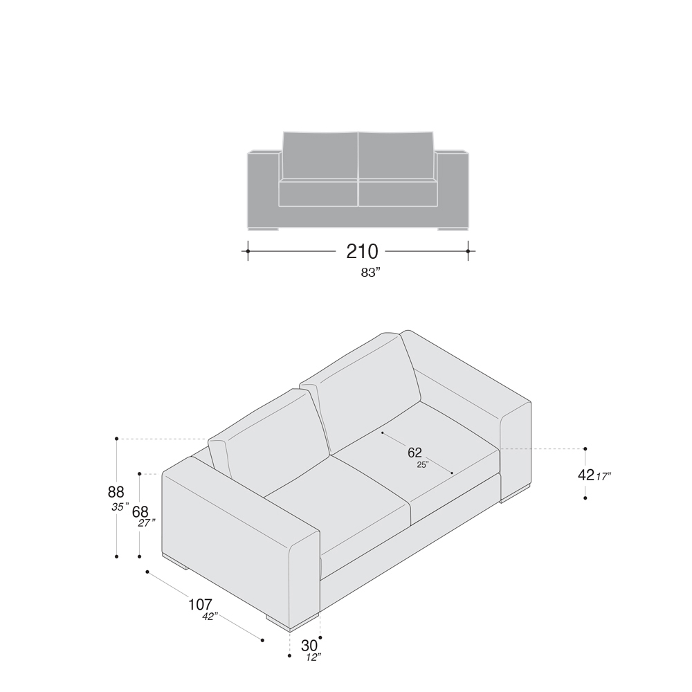 Tillgängliga storlekar:- längd: 210 x djup: 107 x höjd: 88 cm