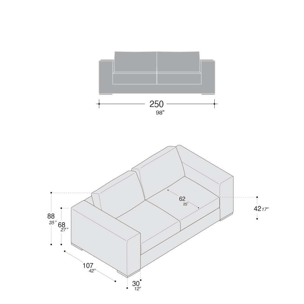 - längd: 250 x djup: 107 x höjd: 88 cm