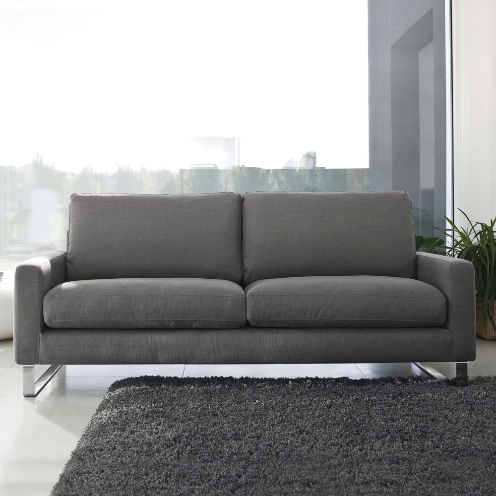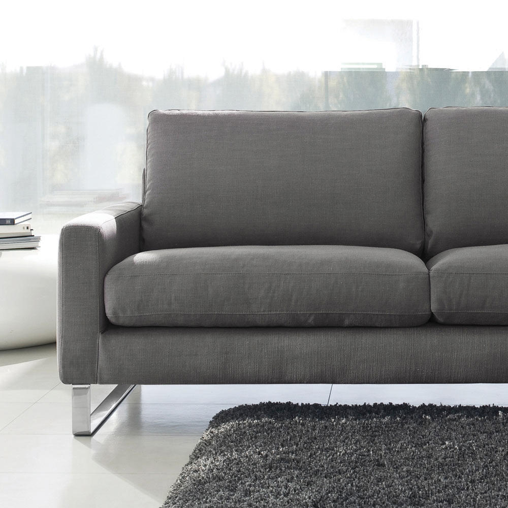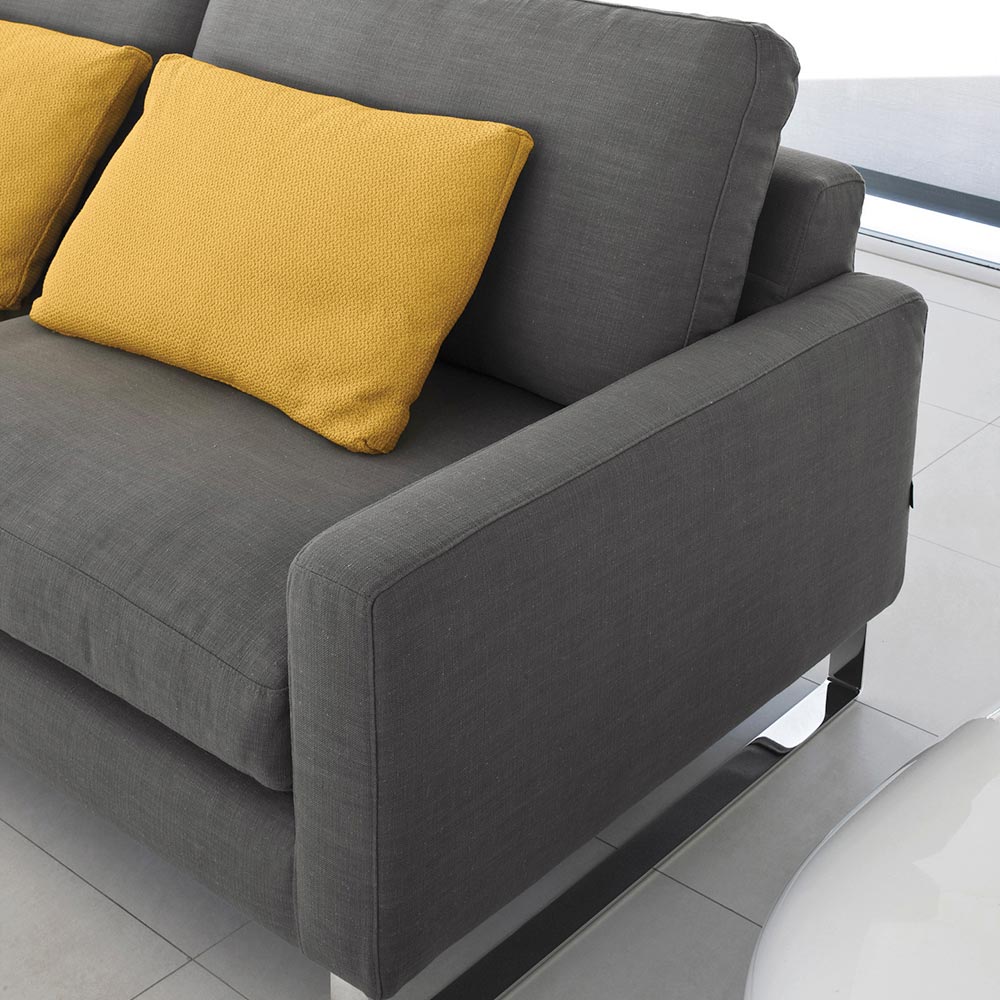 av slädar i kromad metall. Soffan förkroppsligar essensen av minimalism förvandlad till funktionalitet. Med sin unika design erbjuder den komfort och elegans och lovar att alltid hänga med i tiden vad gäller estetik och komfort. Det breda utbudet av klädsel och färger gör den till en mångsidig möbel för alla miljöer.
