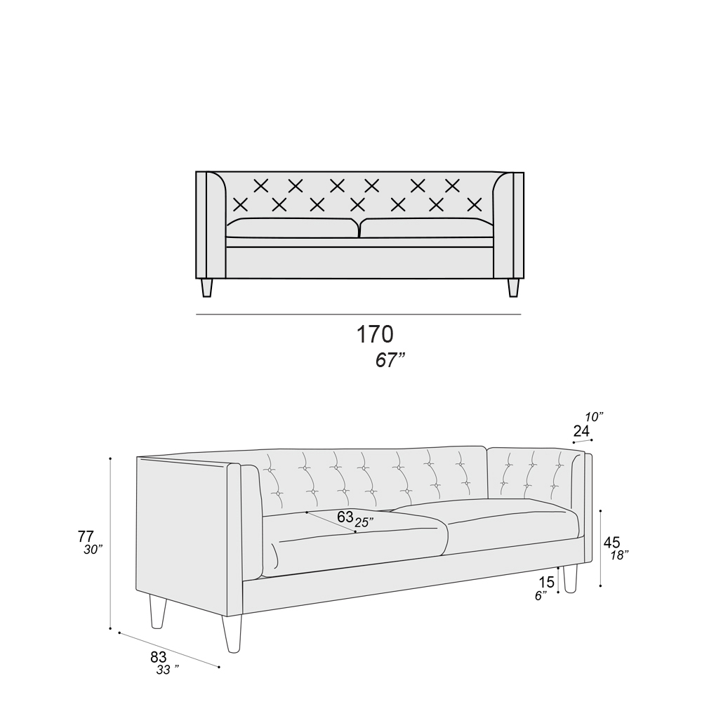 Tillgängliga storlekar:- längd: 170 x djup: 83 x höjd: 77 cm