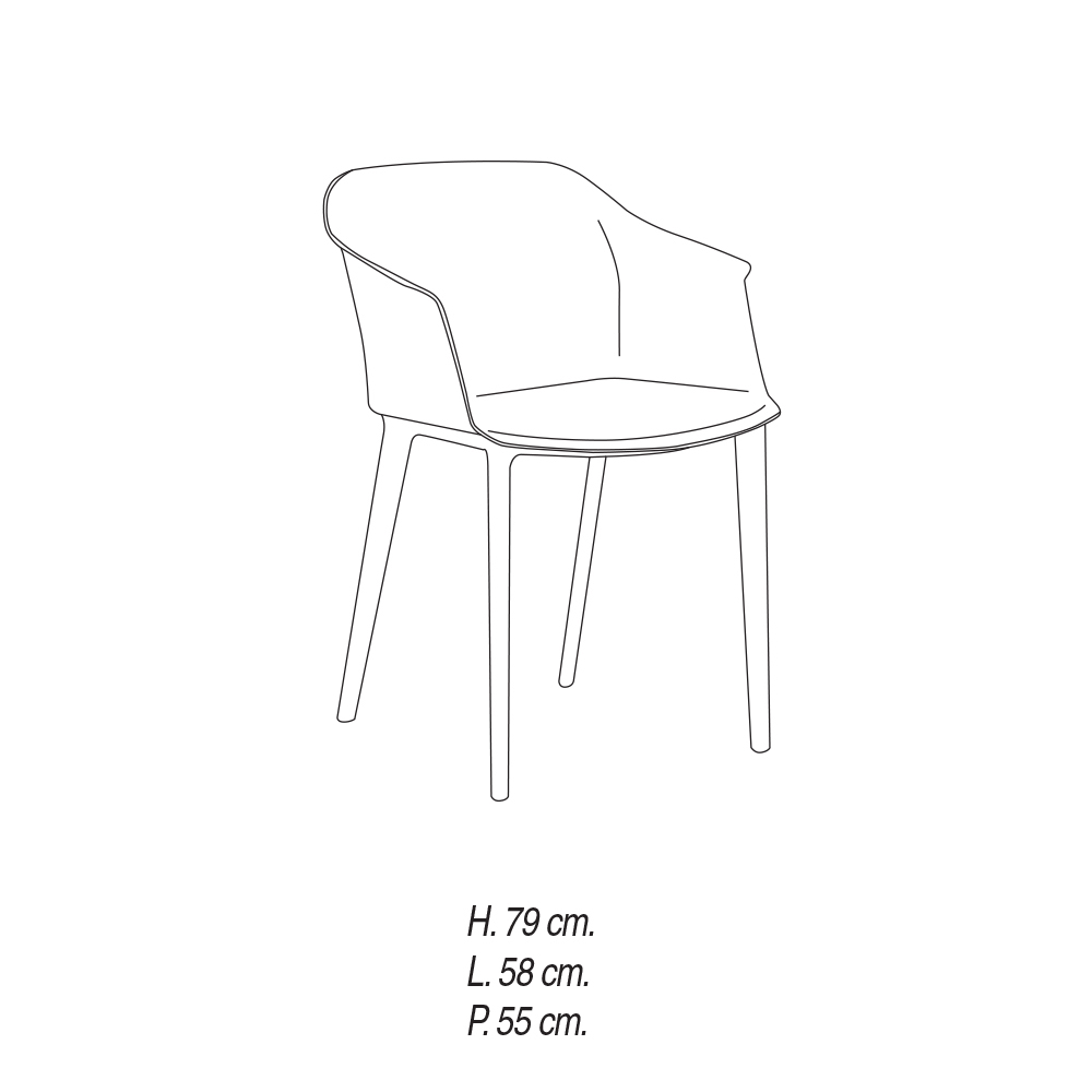 Modern vardagsrumsstol i färgad polypropen Tillverkad i Italien, 4 st.