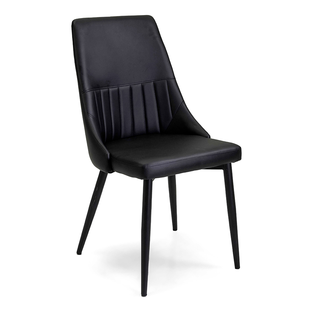 Den här stolen har en ergonomisk sits klädd i ekoläder av hög kvalitet och är en perfekt kombination av komfort och samtida design. Klädseln, berikad med vertikala sömmar detaljer, ger ett sofistikerat utseende som passar perfekt i moderna matsalar , eleganta kontor eller raffinerade kontrakt miljöer.