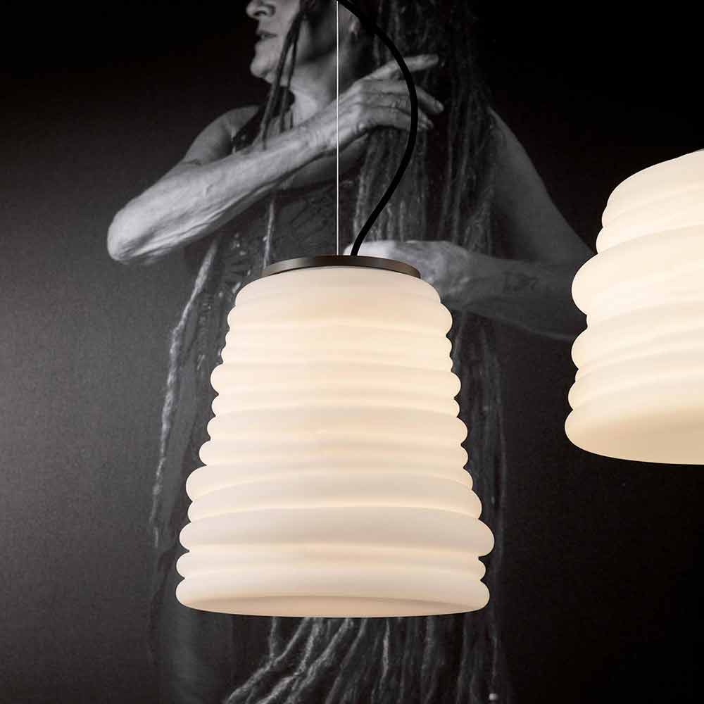 Lampan är gjord med en satinvit glasskärm för en helt italiensk design som genom okonventionellt experiment och kontinuerlig forskning mellan tradition och modernitet kan förvåna, våga och upphetsa, så att du kan uttrycka dina känslor genom en original och personlig dekorativ användning av ljus.