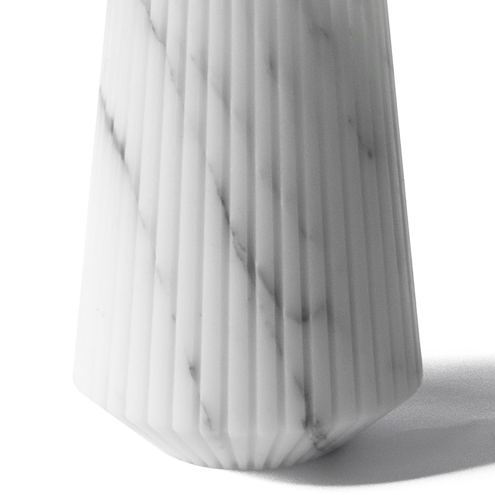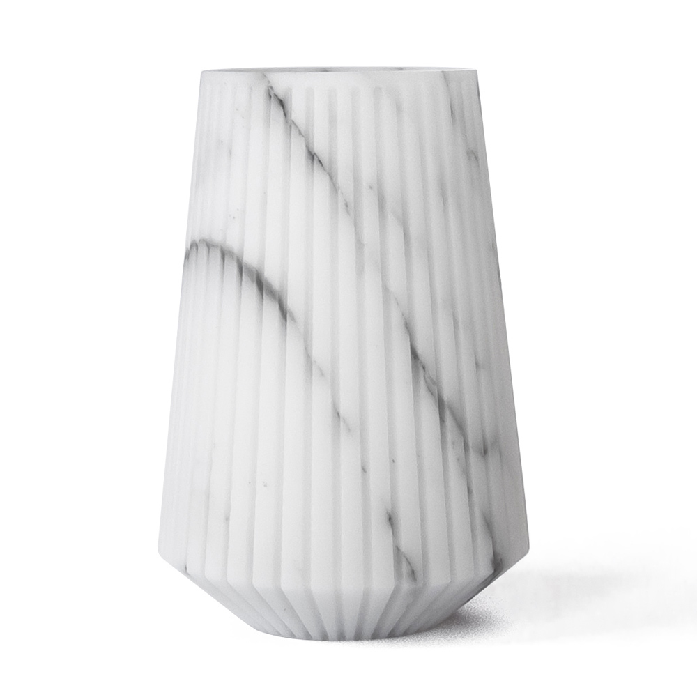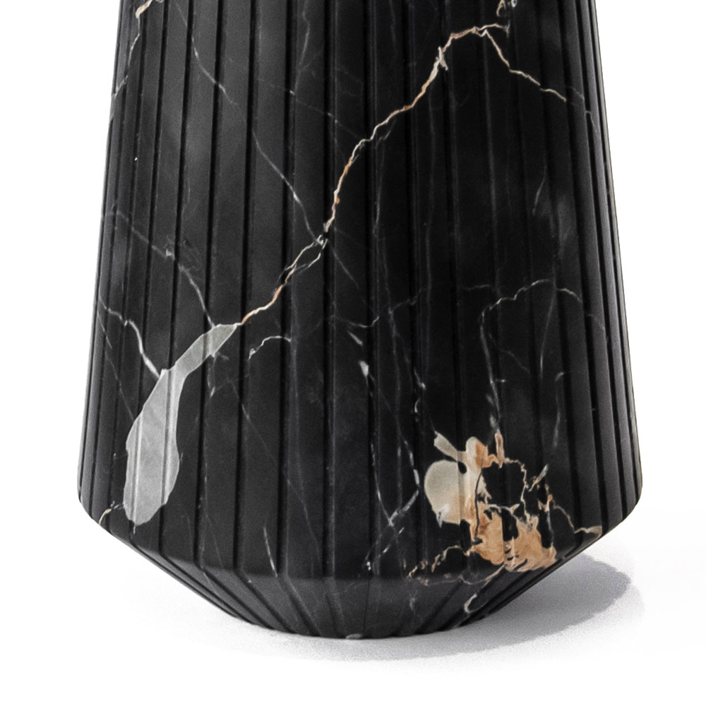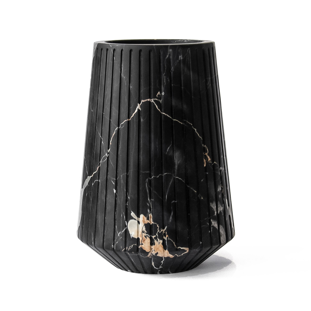 Medium dekorativ vas i vit eller svart randig marmor tillverkad i Italien.
