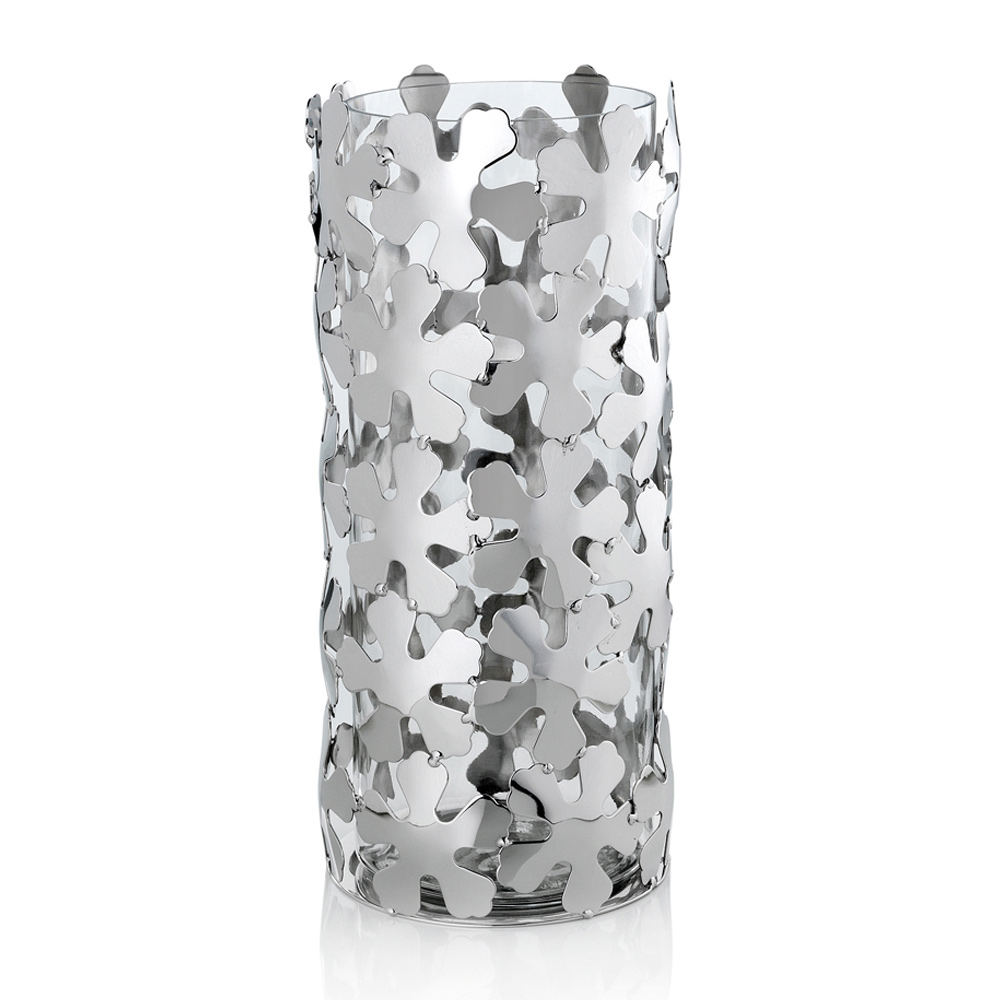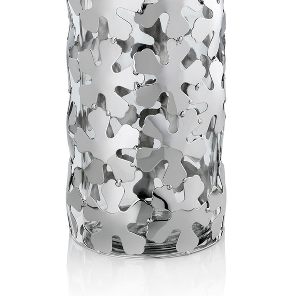 Cylindrisk dekorationsvas i glas och silverpläterad metall med blomma, lyx.