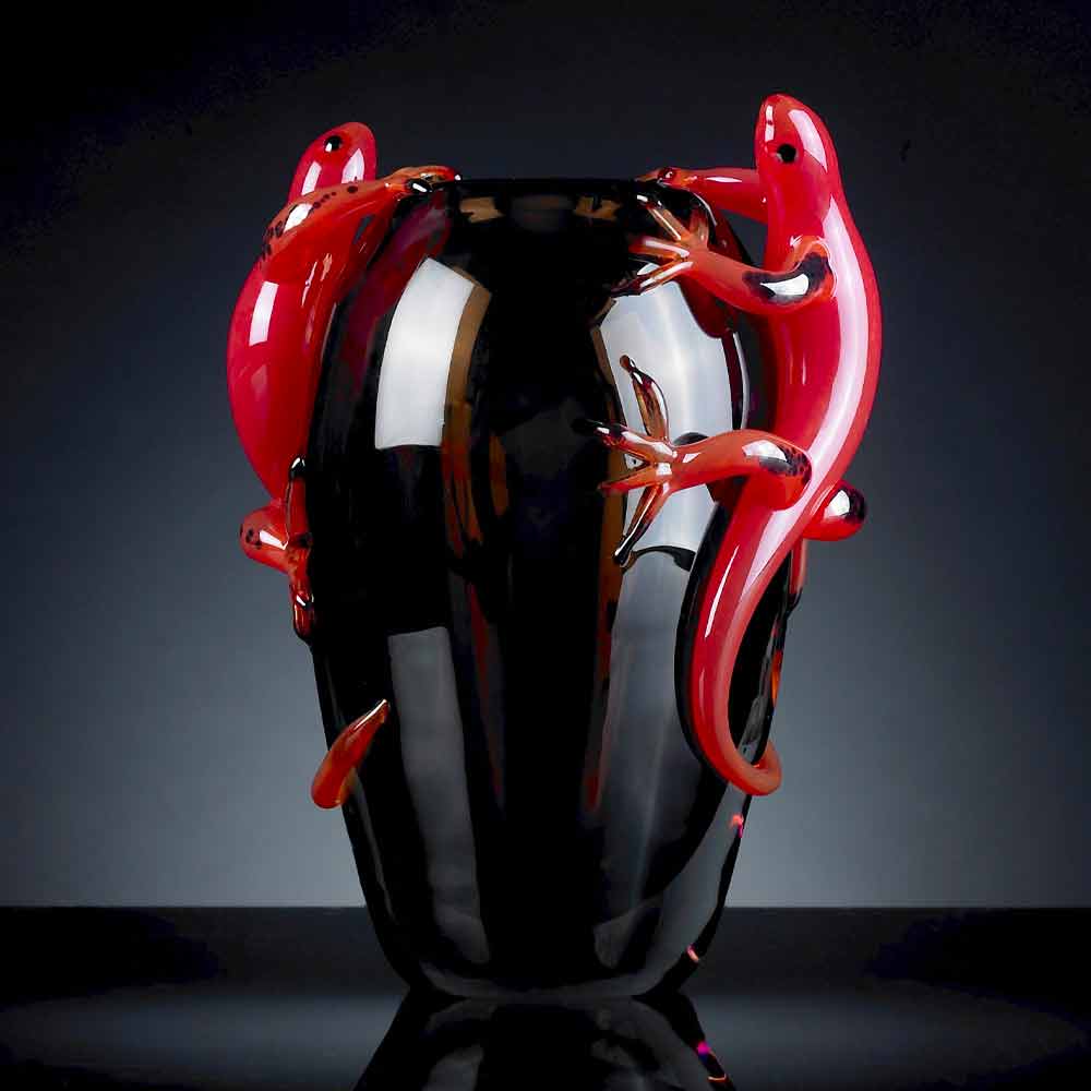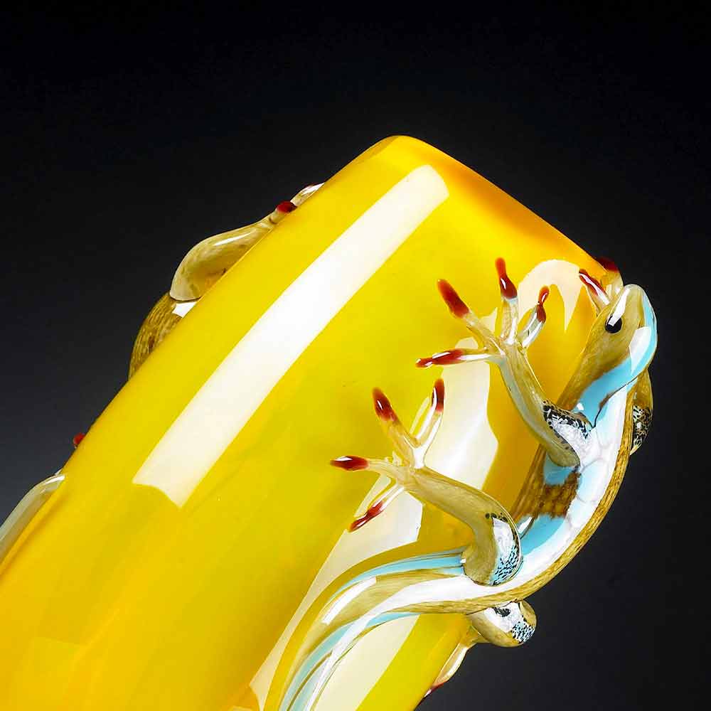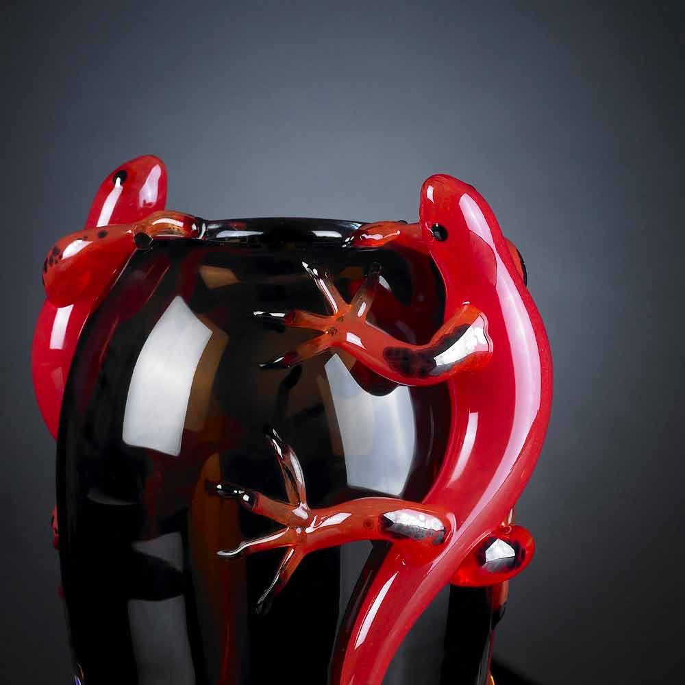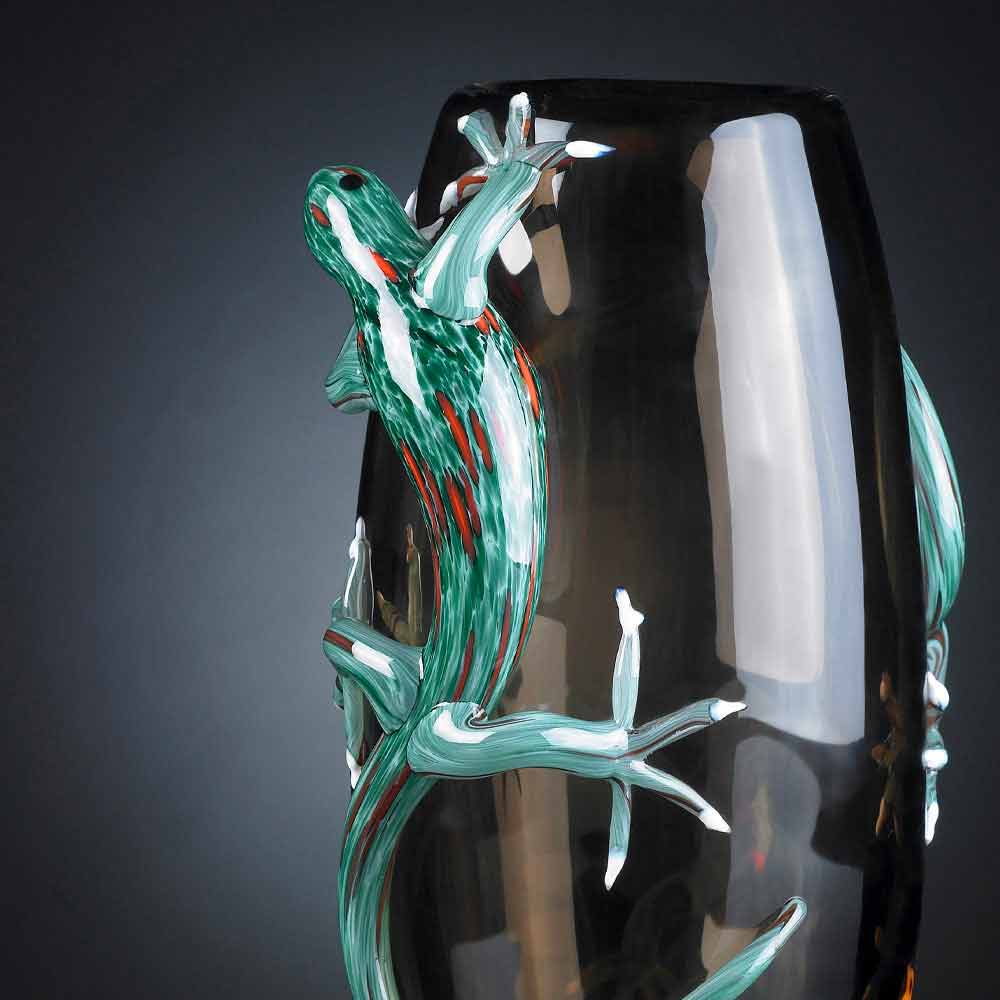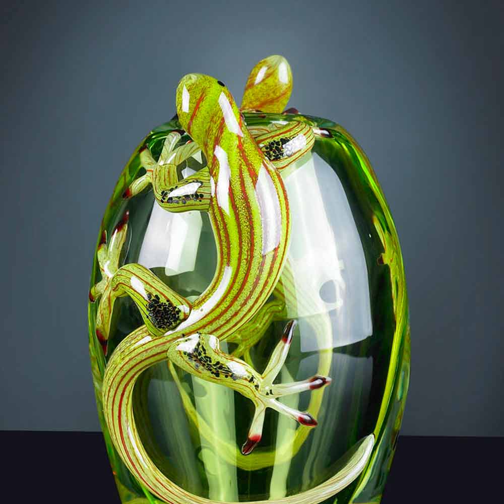 Handgjord dekorativ glasvas med 2 gecko tillverkade i Italien.