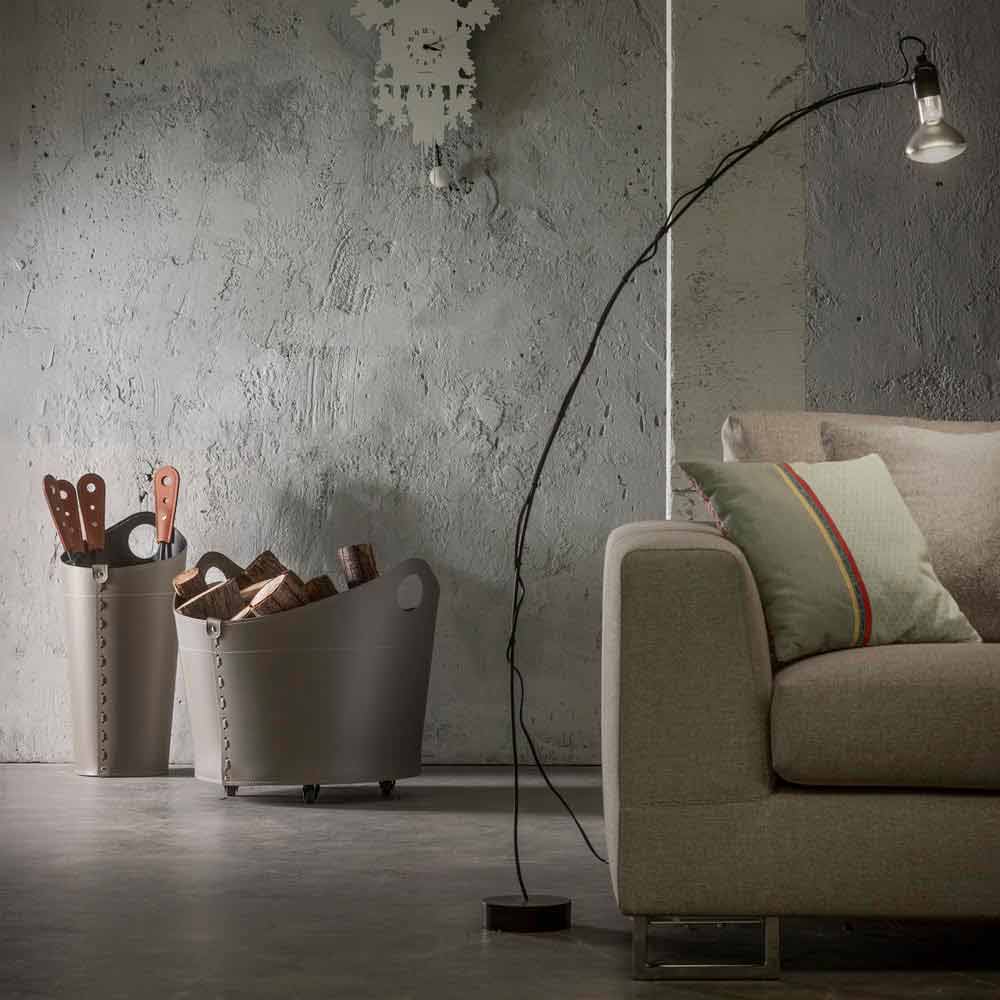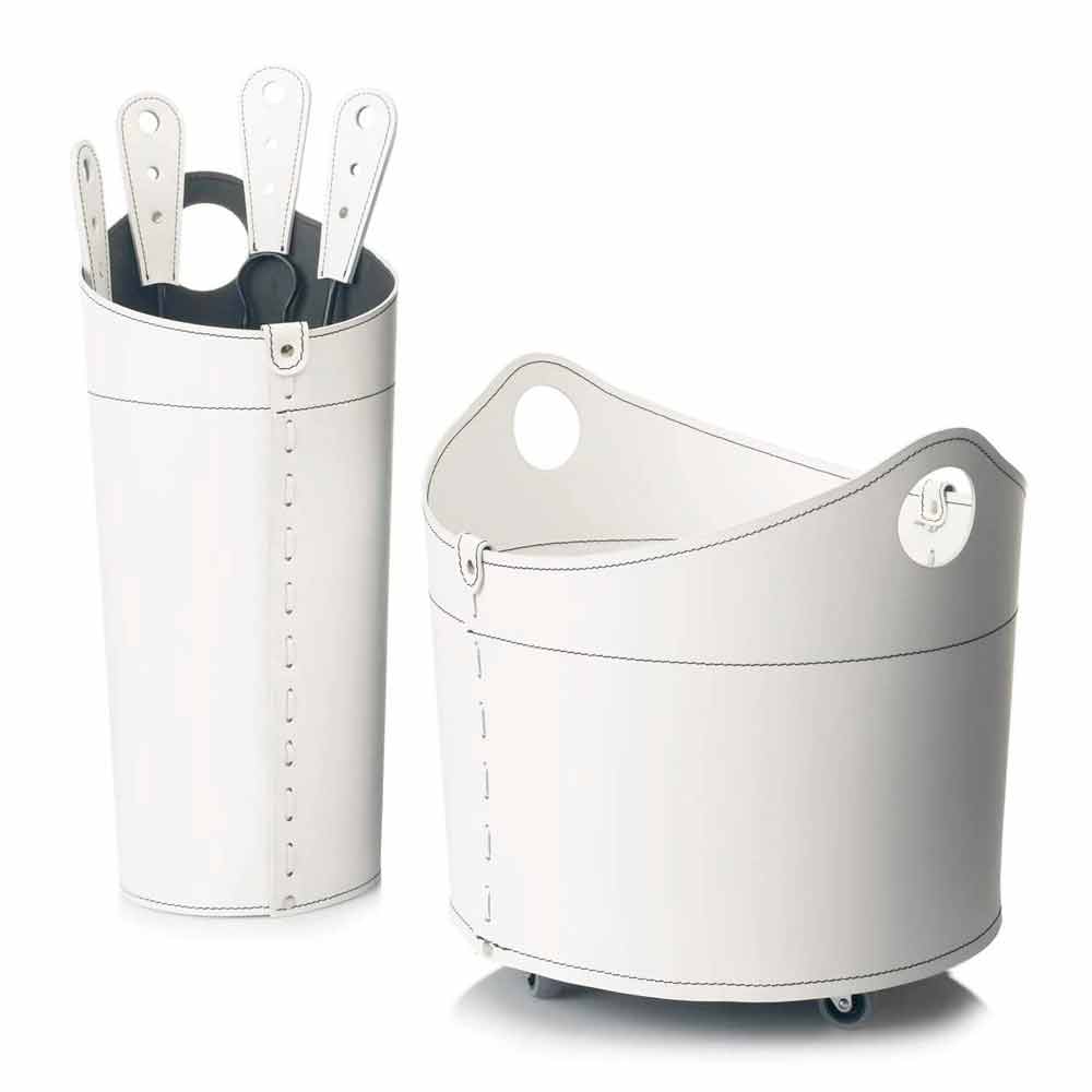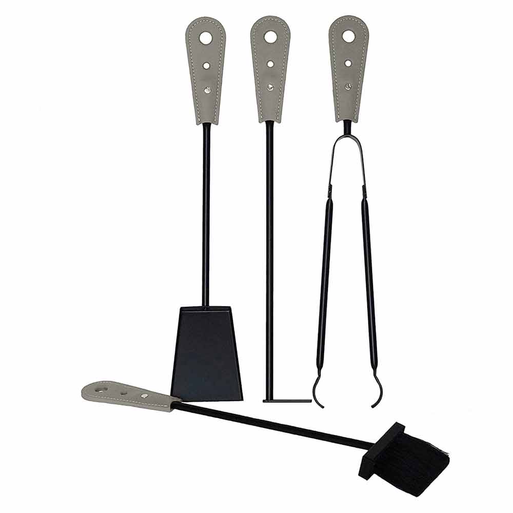 För att slutföra kompositionen, en uppsättning eldstäder av stål i målat stål och komplett med läderhandtag. Tillbehöret till eldstaden innehåller: scoop, poker, vår och toalettborste, alla 65 cm långa.