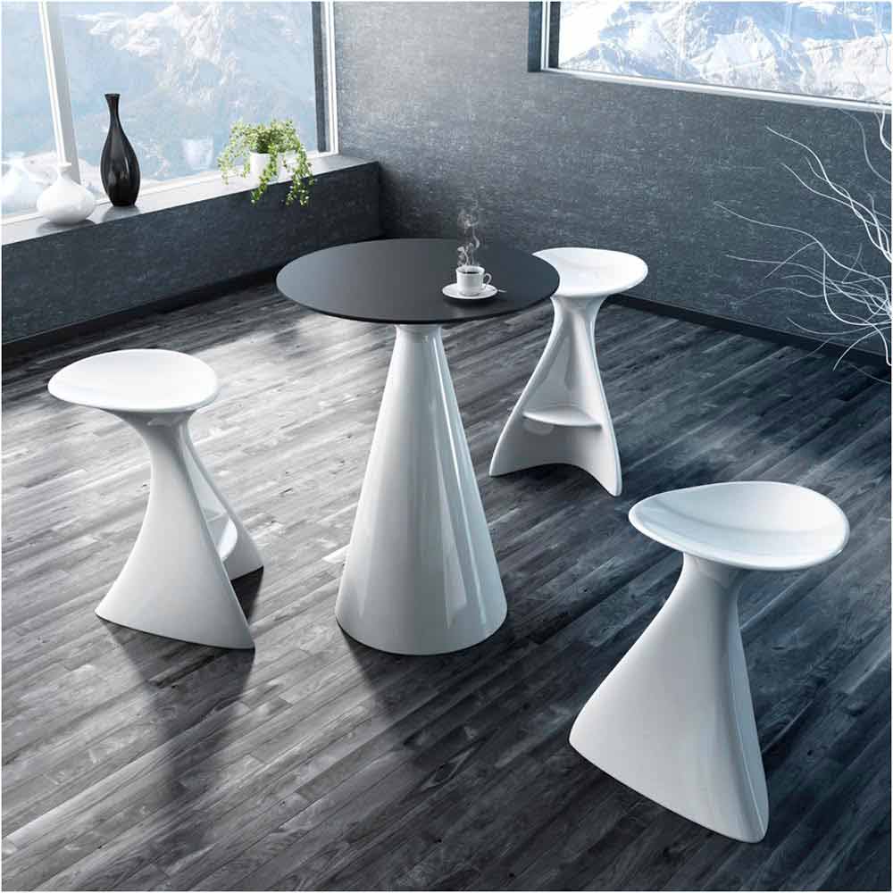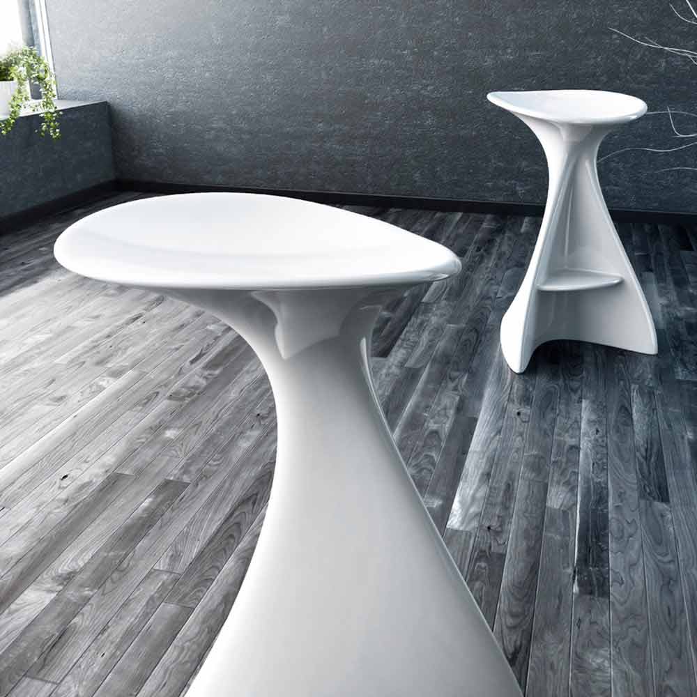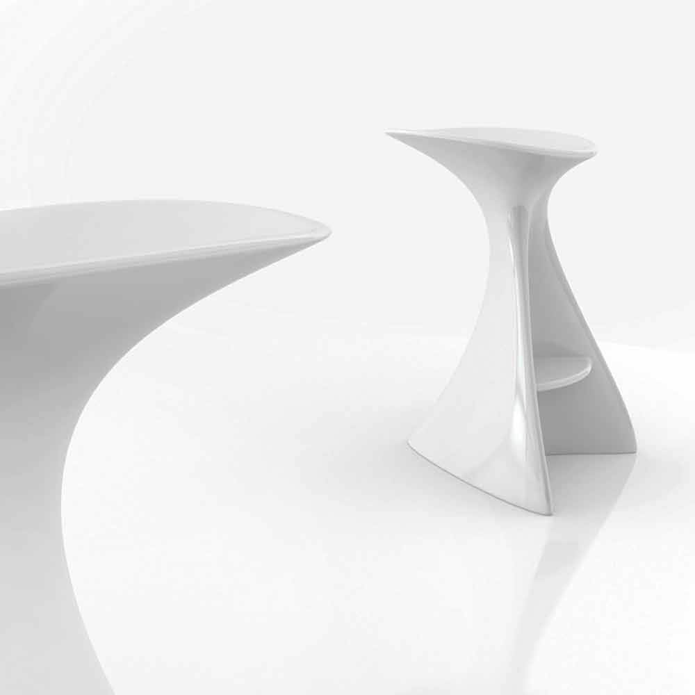 Monolitisk pall gjord av solid yta; kännetecknas av en organisk/biomorf design som påminner om science fiction-världen.