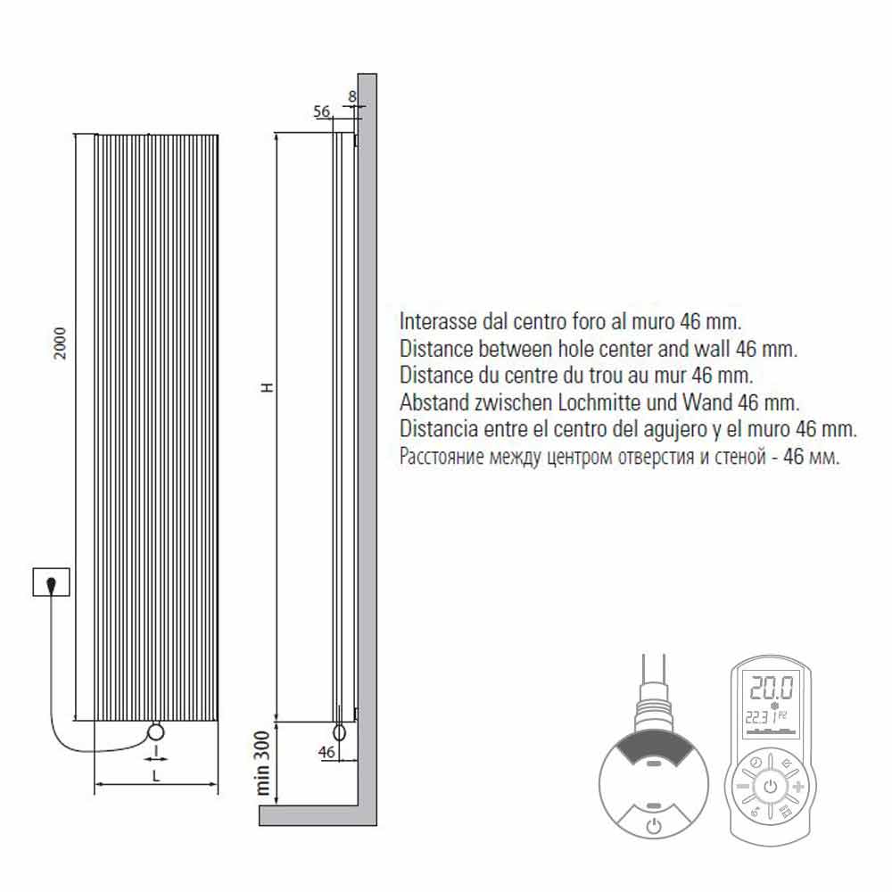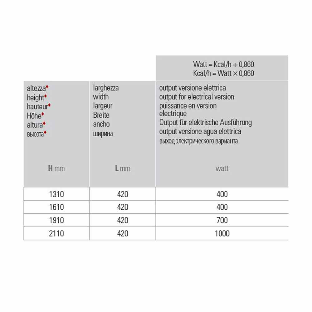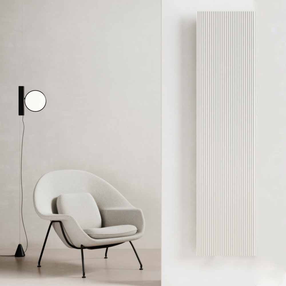 Elektrisk väggmonterad aluminiumkylare, modern design, tillverkad i Italien.