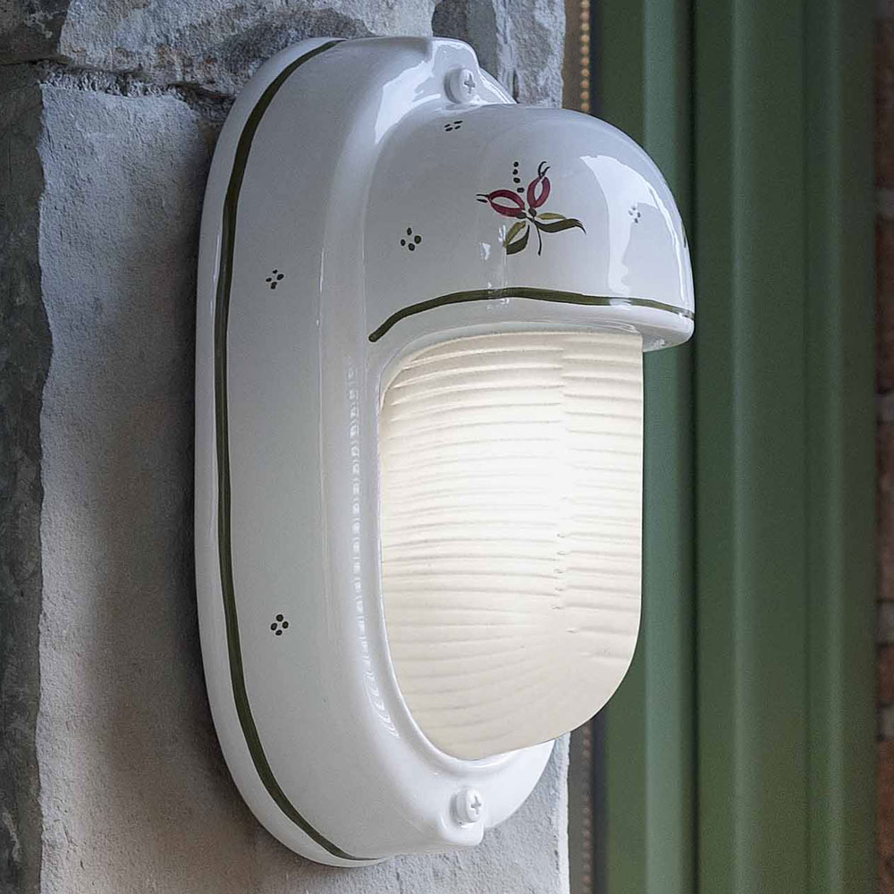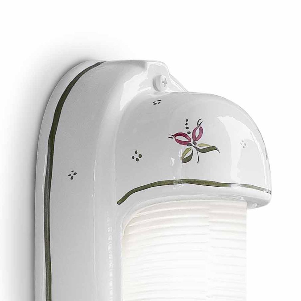 Denna vertikala trädgårdsvägglampa är helt gjord av keramik dekorerad med handmålade blommor för en klassisk och harmonisk stil mellan form och färger.