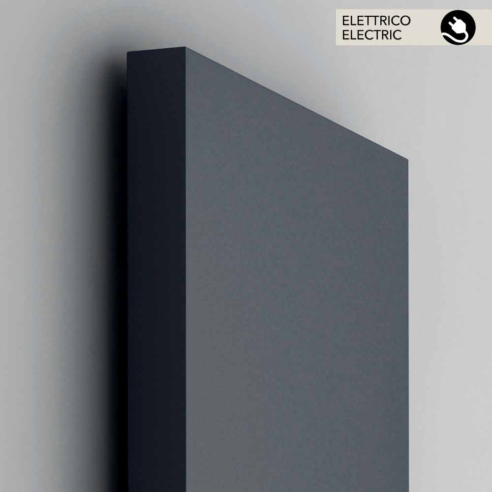 Vertikal radiator med stålkåpa i modern stil, i den elektriska versionen. Uppvärmd radiator lämplig för alla miljöer. Rena och rena linjer för en mångsidig produkt som är utformad för att kombinera design och höga termiska utbyten. Välj den färg som passar dig!