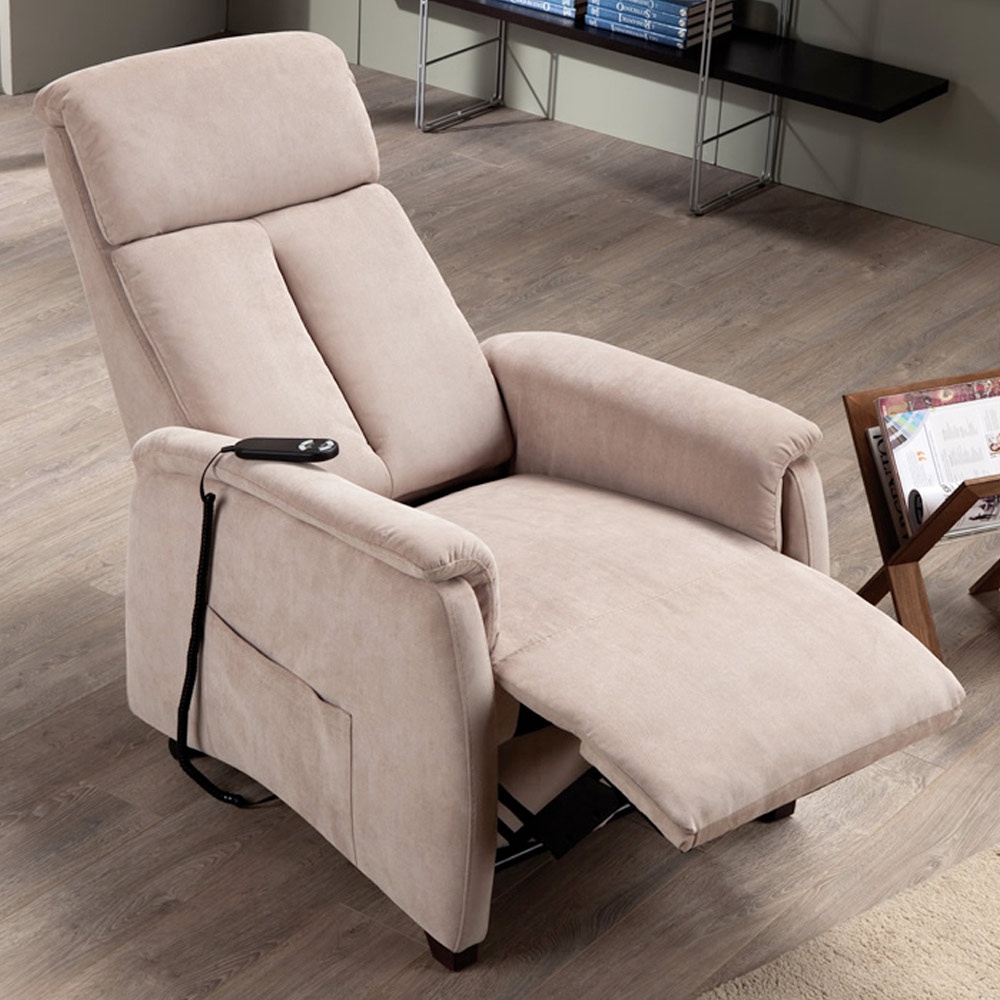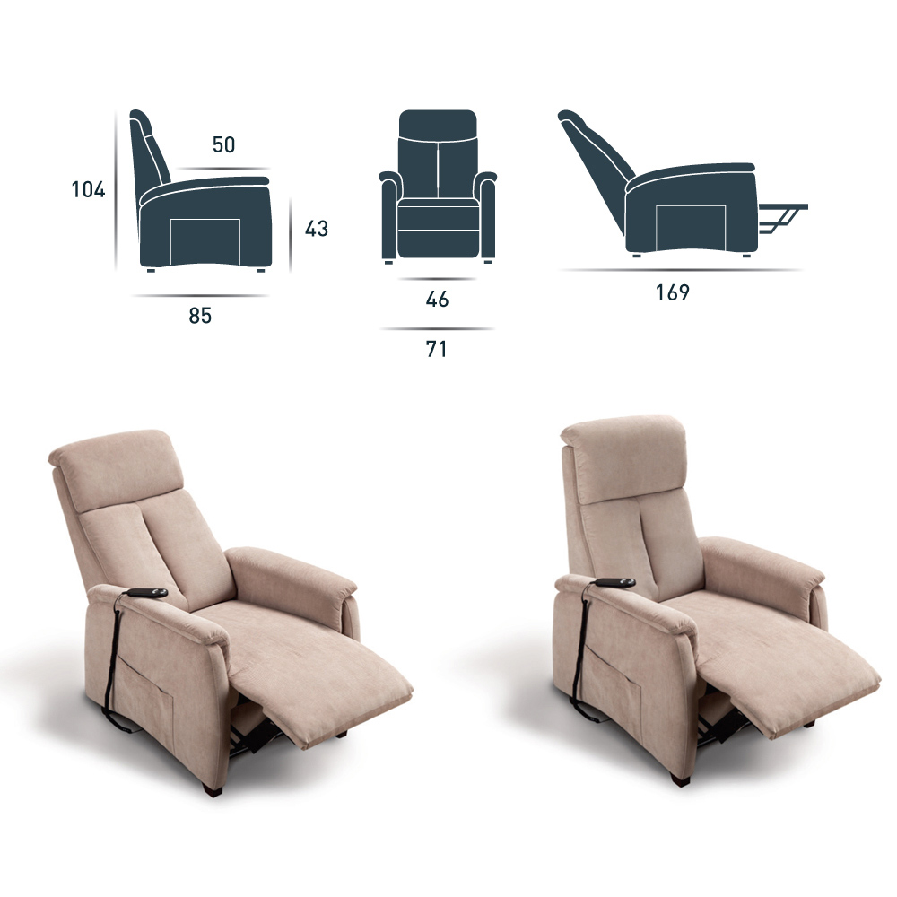 Lyftstolen Via Venezia har en mekanism med två motorer och en motoriserad avslappningsrörelse med hjälp av en fjärrkontroll.