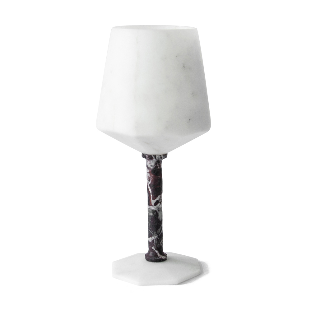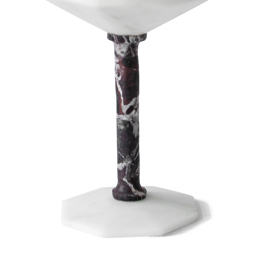 Vinglas i satängvit Carraramarmor och röd Levanto, design tillverkad i Italien.