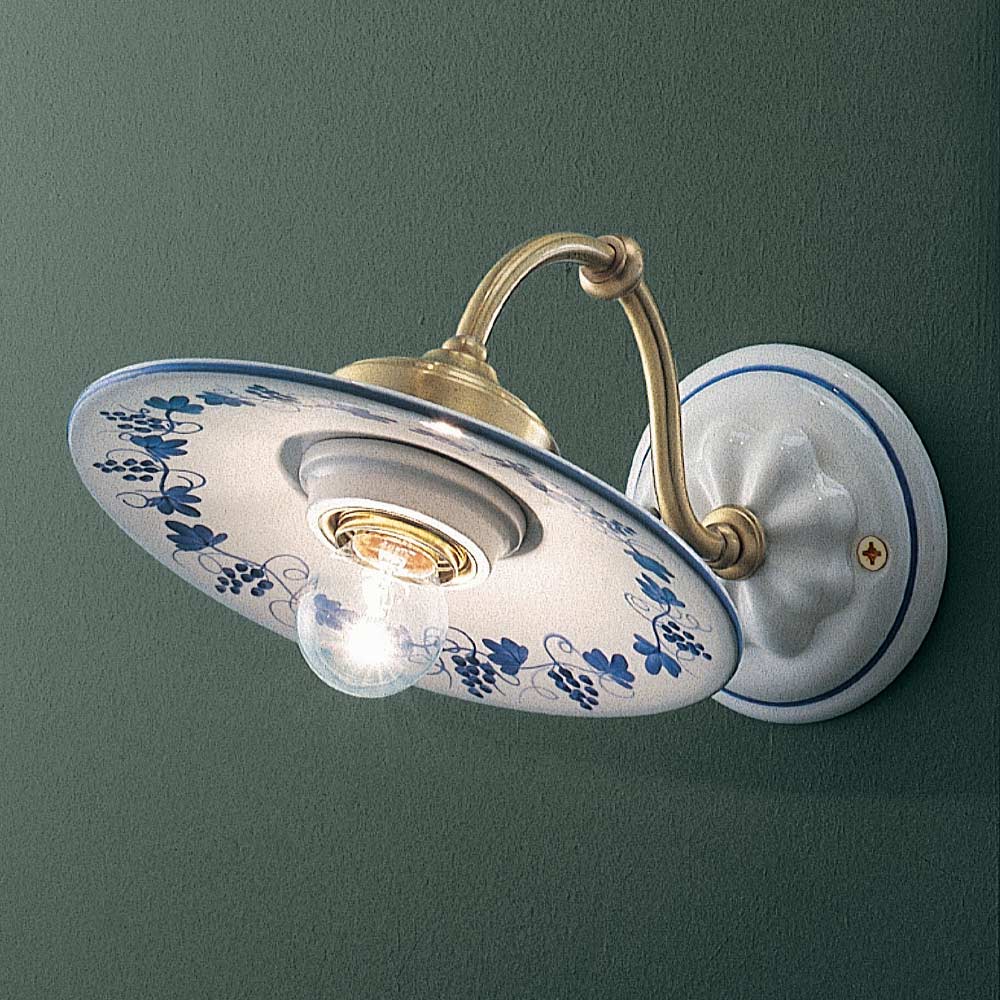 Vintage handmålad vägglampa i järn och keramik tillverkad i Italien av Ferroluce.