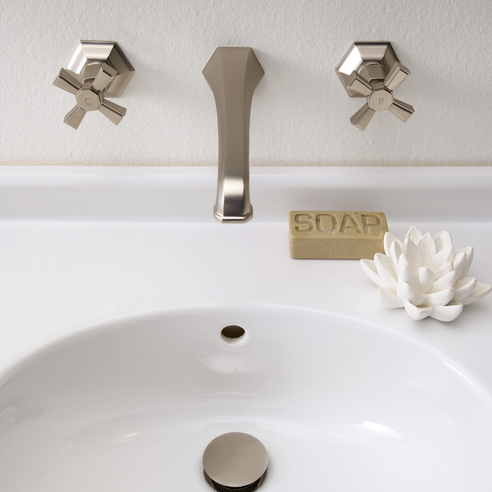 tvättställs- eller vägghängd tvättställsblandare med tre hål, tillverkad i mässing.
