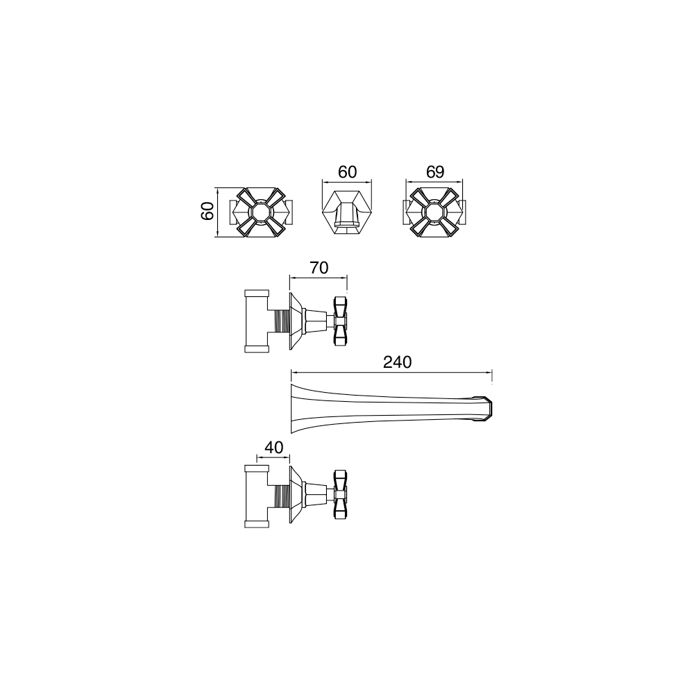 Silvana modell mässing väggmonterad handfat eller tvättställsblandare, tillverkad i Italien.