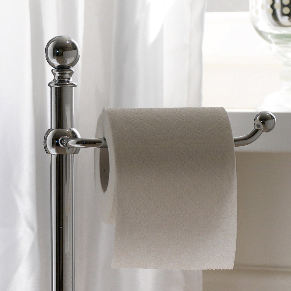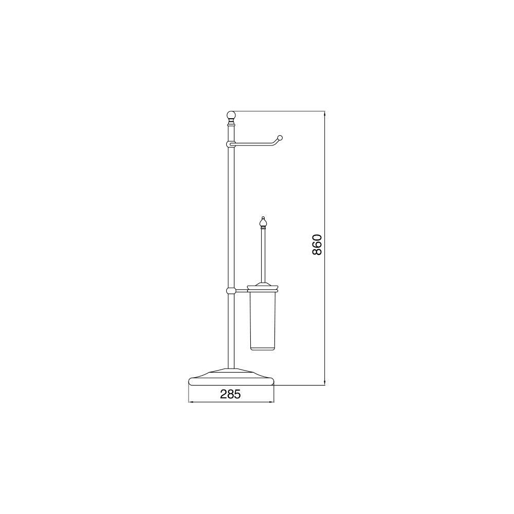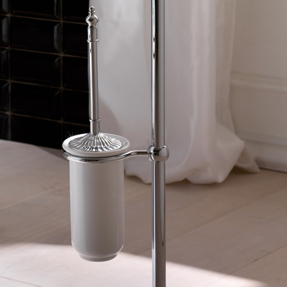 Stående handdukshängare med toalettborsthållare och vintage pappershållare tillverkad i Italien.