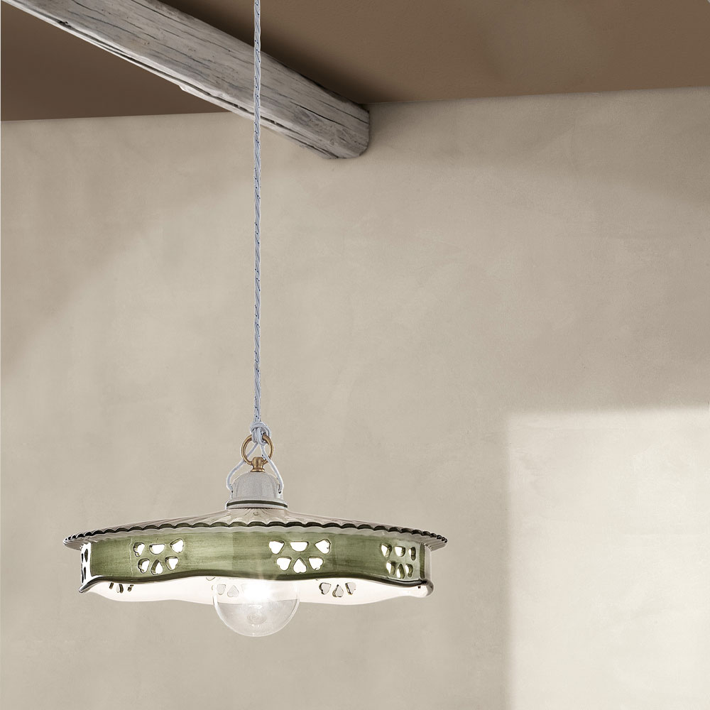 Vintage keramik och handgjord taklampa i järn - Alessandria
