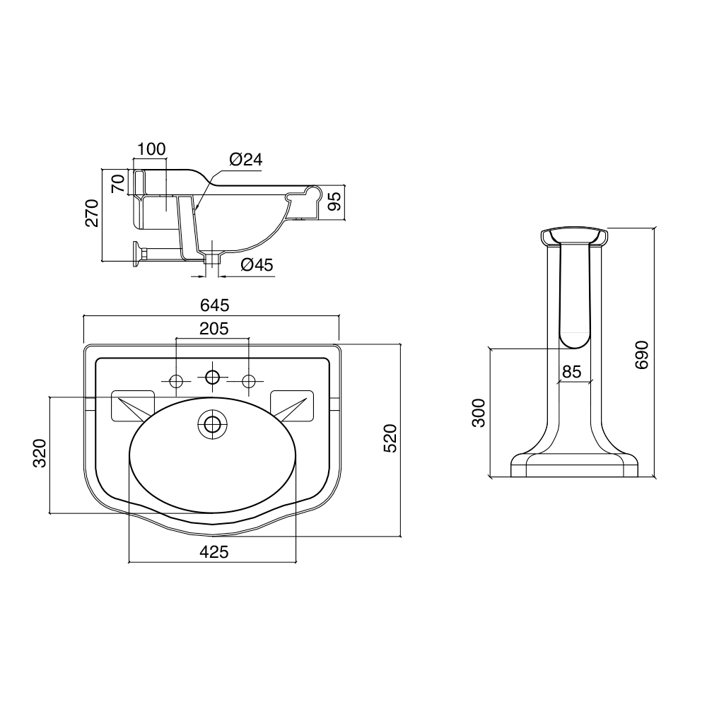 - B 64,5 x D 52 x H 69 cm med stänkskydd och stänkskyddskant 1-3 kranhål - B 645 mm;