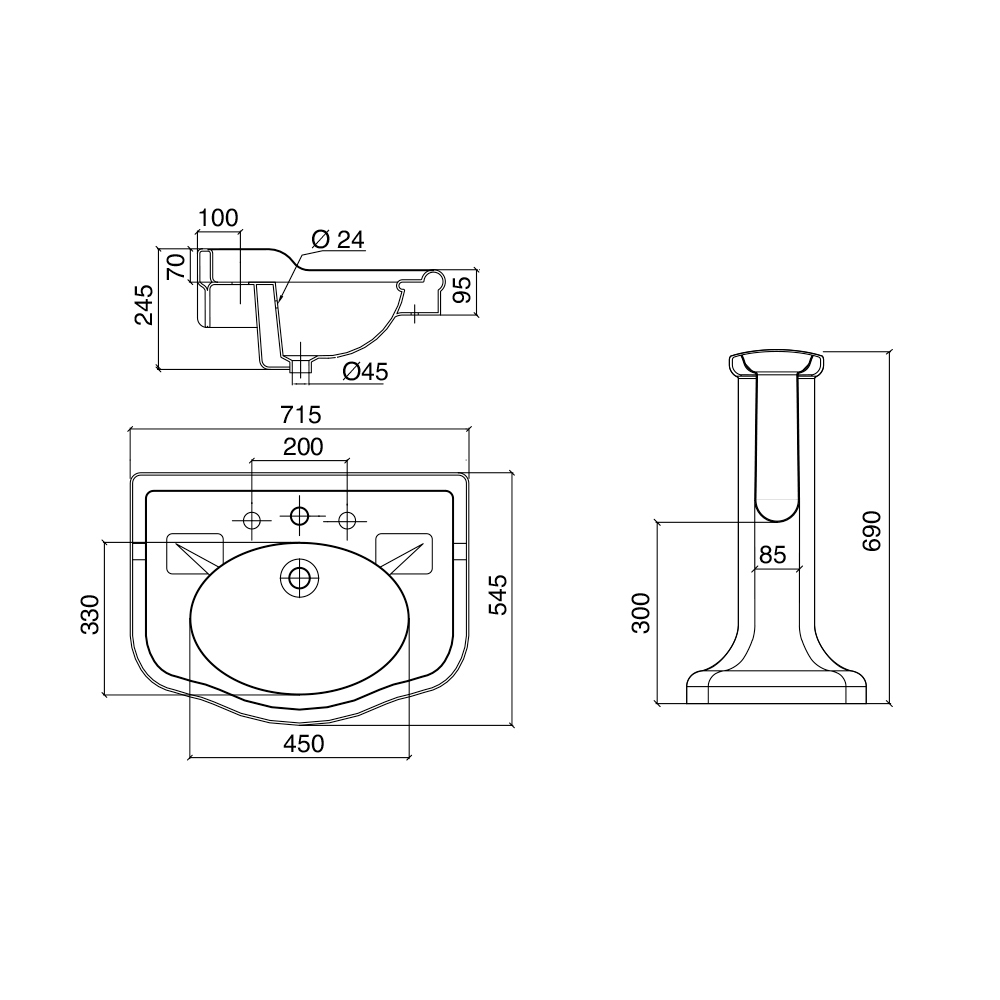 - B 71,5 x D 54,5 x H 69 cm med stänkskydd och stänkskyddslist 1-3 kranhål - B 715 mm;