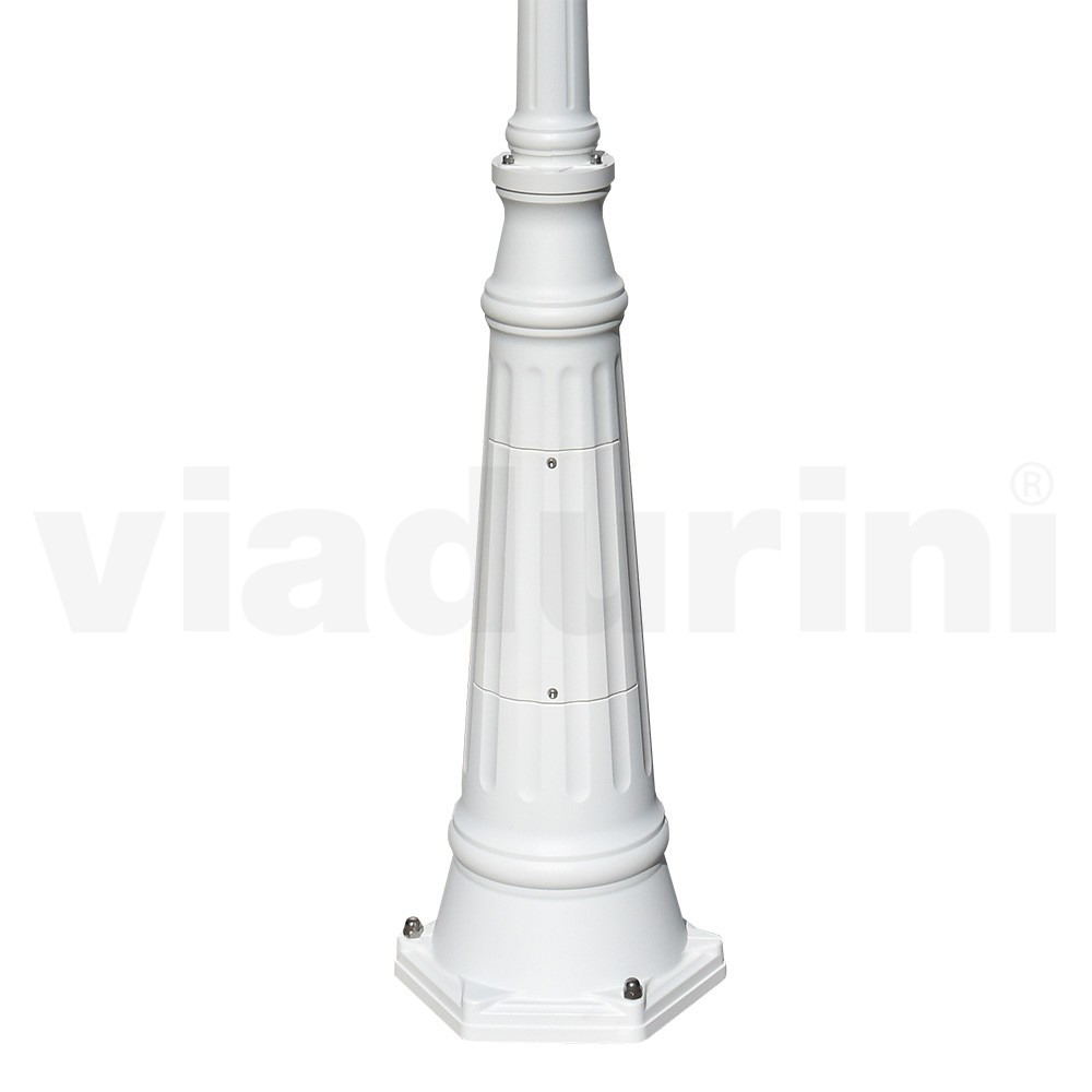 3-ljus trädgårdslampa tillverkad i Italien med präglad vit pressgjuten aluminiumstruktur och diffusor i naturlig mässing (d. 260 mm). Komplett med rostfria skruvar och silikonpackning för bättre skydd. Från den perfekta kombinationen av funktionalitet och elegans kommer ett unikt inredningstillbehör som säkerställer kvalitetsbelysning och som samtidigt erbjuder ett dekorativt element med en traditionell personlighet som kan fullborda den omgivande atmosfären tack vare dess raffinerade egenskaper och dess imponerande karaktär. Idealisk för utomhusmiljöer som trädgårdar, innergårdar, alléer och gångvägar men även kontraktsutrymmen som barer och restauranger.