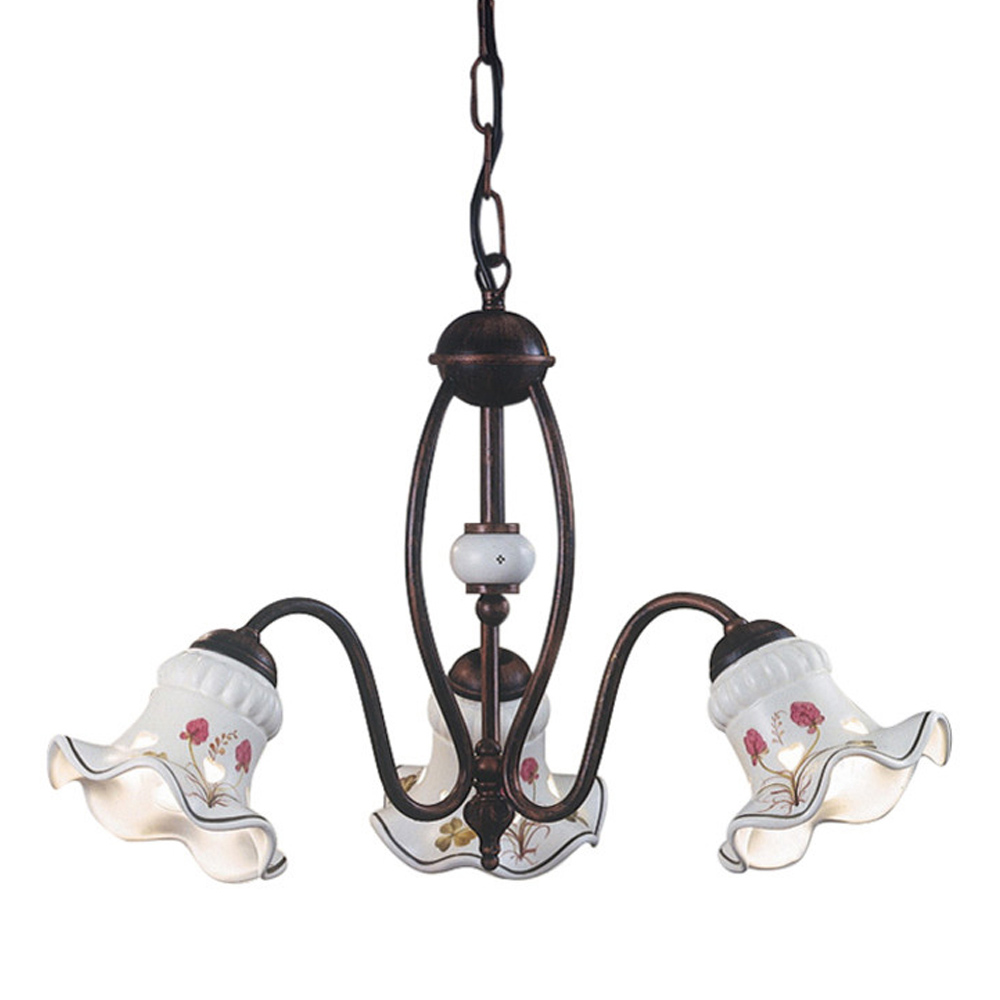 Vardagsljuskrona med 3 eller 5 lampor i handdekorerat järn och keramik, tillverkad i Italien av Ferroluce.