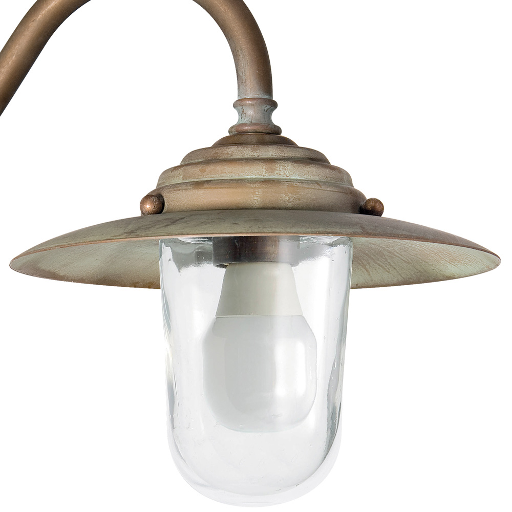 Den böjda armen och metallskärmen påminner om stilen hos traditionella utomhuslampor , elegant omtolkade för att framhäva fasader , verandor , terrasser och entréer . En idealisk lösning för klassiska , rustika eller arkitektoniskt förfinade sammanhang.