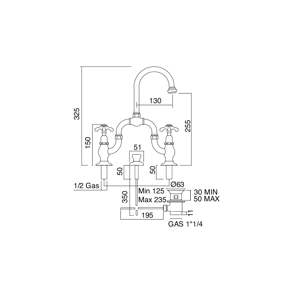 bro tvättställsblandare med 2-3 hål med avlopp, justerbart centrumavstånd och ledad pip.