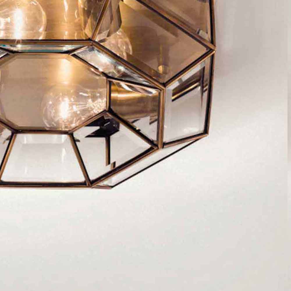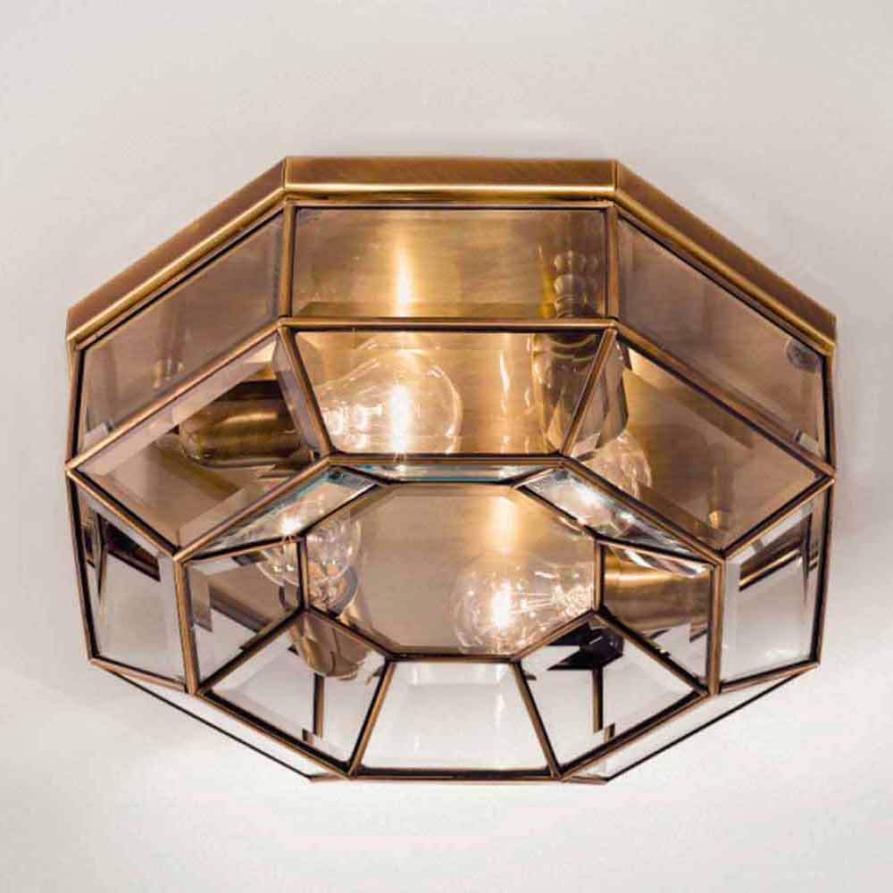 Taklampa med 4 åttkantiga lampor i mässing och glas handgjord design tillverkad i Italien.