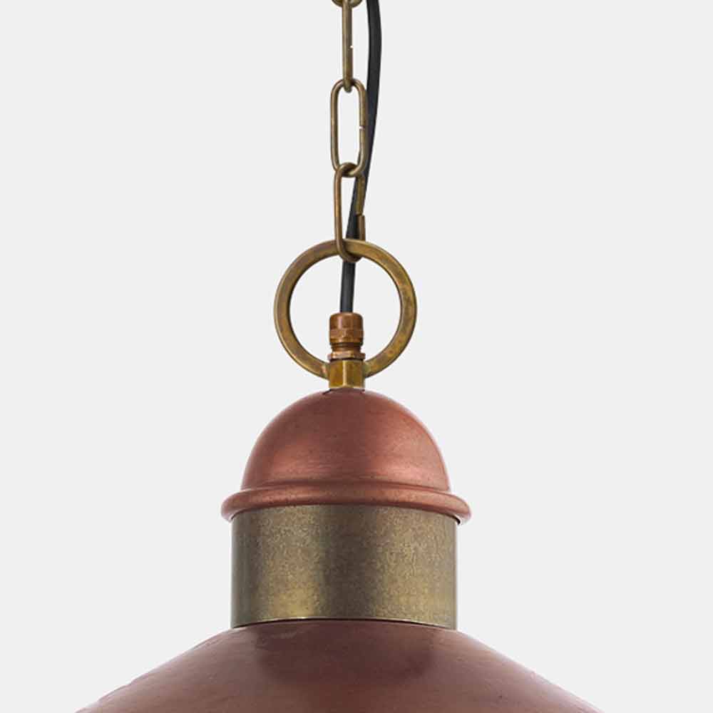 Vintage taklampa i mässing och antik koppar med kedja, tillverkad i Italien.