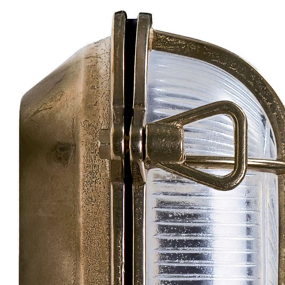 Med en stark nautisk karaktär och en elegant industriell smak är denna utomhusvägglampa en belysningslösning utformad för att förhöja utomhusutrymmen med personlighet och estetisk robusthet . Den handgjorda mässingsstrukturen uttrycker en autentisk och tidlös charm, perfekt för raffinerade arkitektoniska sammanhang.