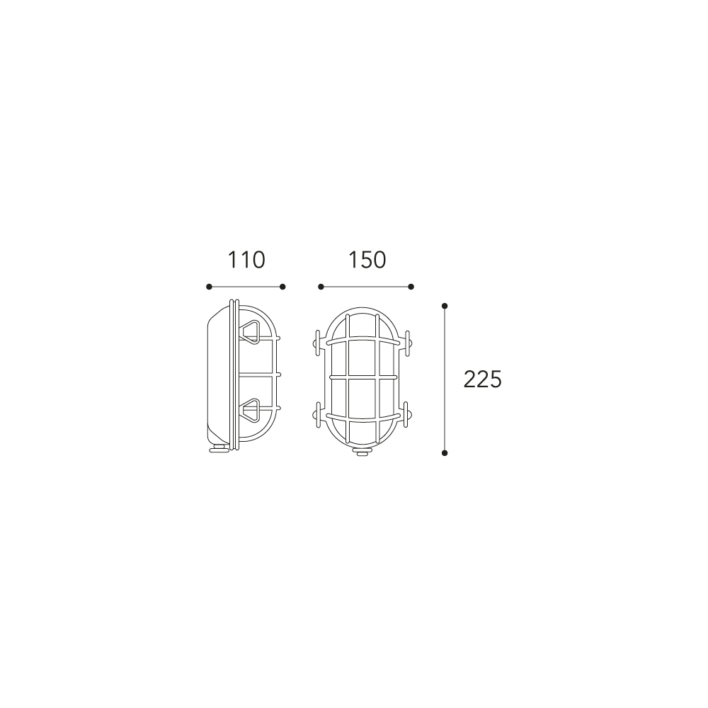 Den ovala diffusorn , tillgänglig i klarglas eller opalglas , skyddas av ett massivt metallgaller som påminner om den nautiska och industriella världen, samtidigt som det garanterar säkerhet och hållbarhet . Ljuset är funktionellt och omslutande , perfekt för att belysa fasader , entréer , utvändiga trappor och utomhusutrymmen .