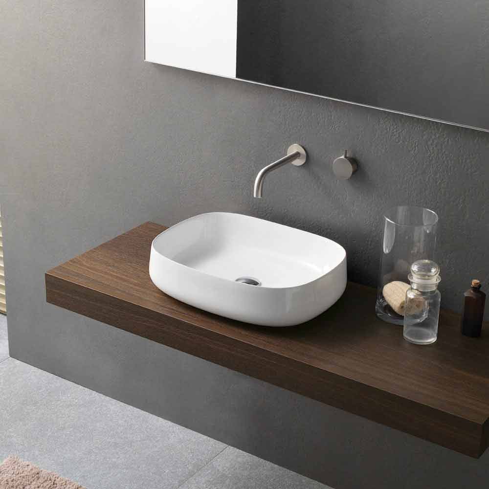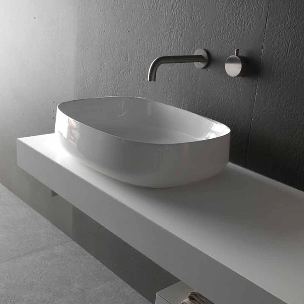 Modernt tvättställ för bänkskivan, vit keramisk design, tillverkad i Italien.