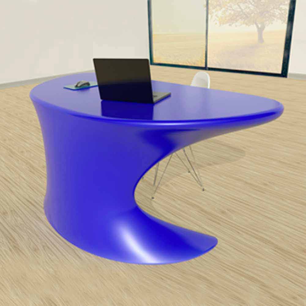 Mjuka och slingrande linjer är de utmärkande egenskaperna hos detta skrivbord med en attraktiv och avgörande form. En omslutande design och en stor arbetsyta till tjänst för dem som vill arbeta i full komfort utan att ge avkall på stil och elegans.