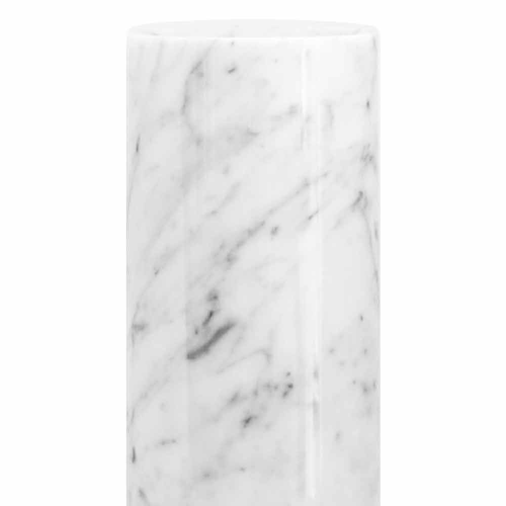Dekorativ vas som kännetecknas av det högkvalitativa materialet som används för dess förverkligande, den vita Carrara-marmorn . Det är en unik bit eftersom varje marmorblock skiljer sig åt i vener och nyanser.
