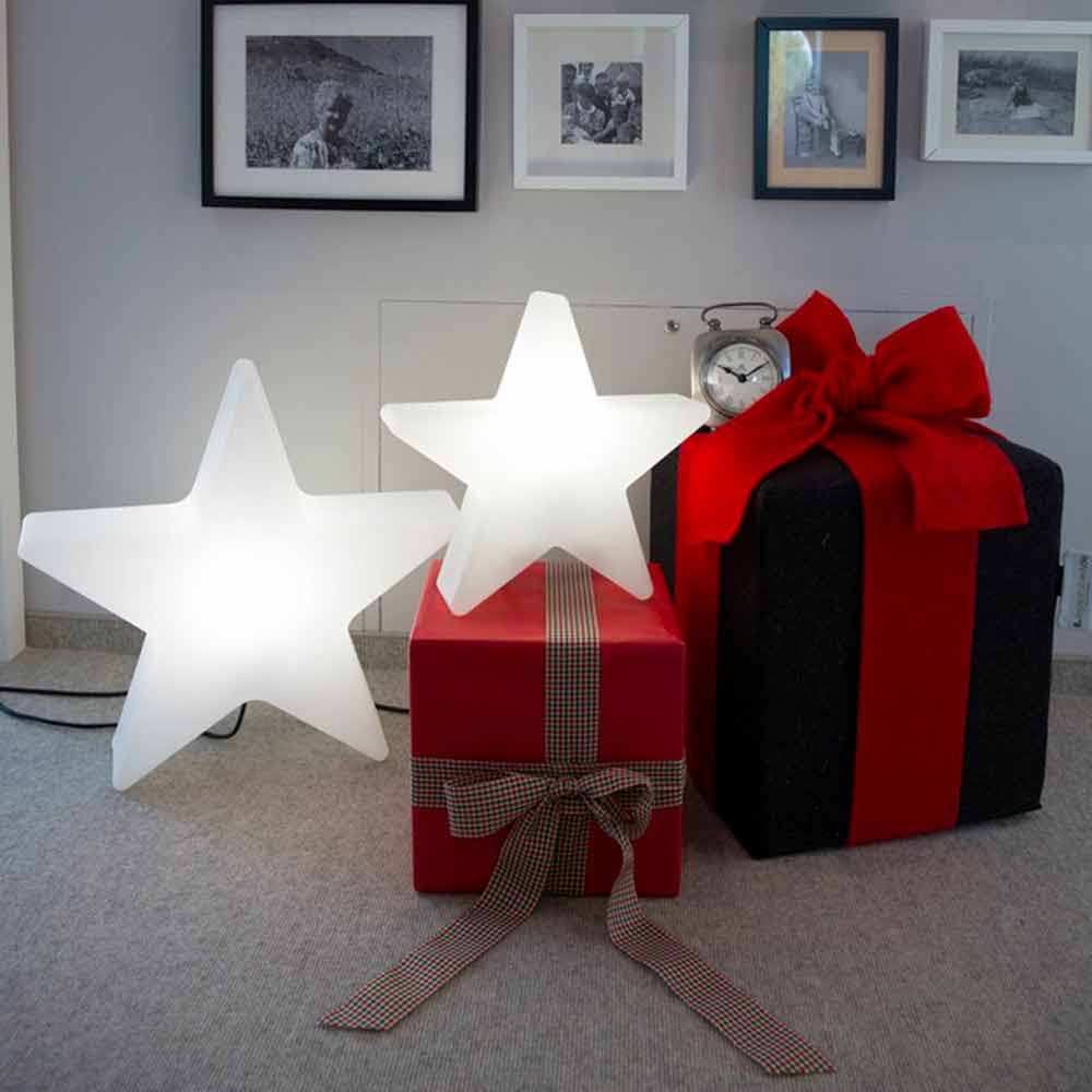 Denna golvlampa för inomhus eller utomhus kännetecknas av sin attraktiva och moderna design med stjärnform . Denna dekorativa ljuspunkt glädjer själen och hjärtat och skapar en glittrande och modern atmosfär, särskilt perfekt under julperioden.