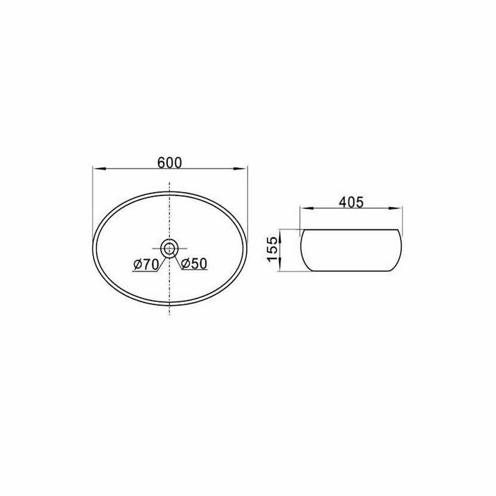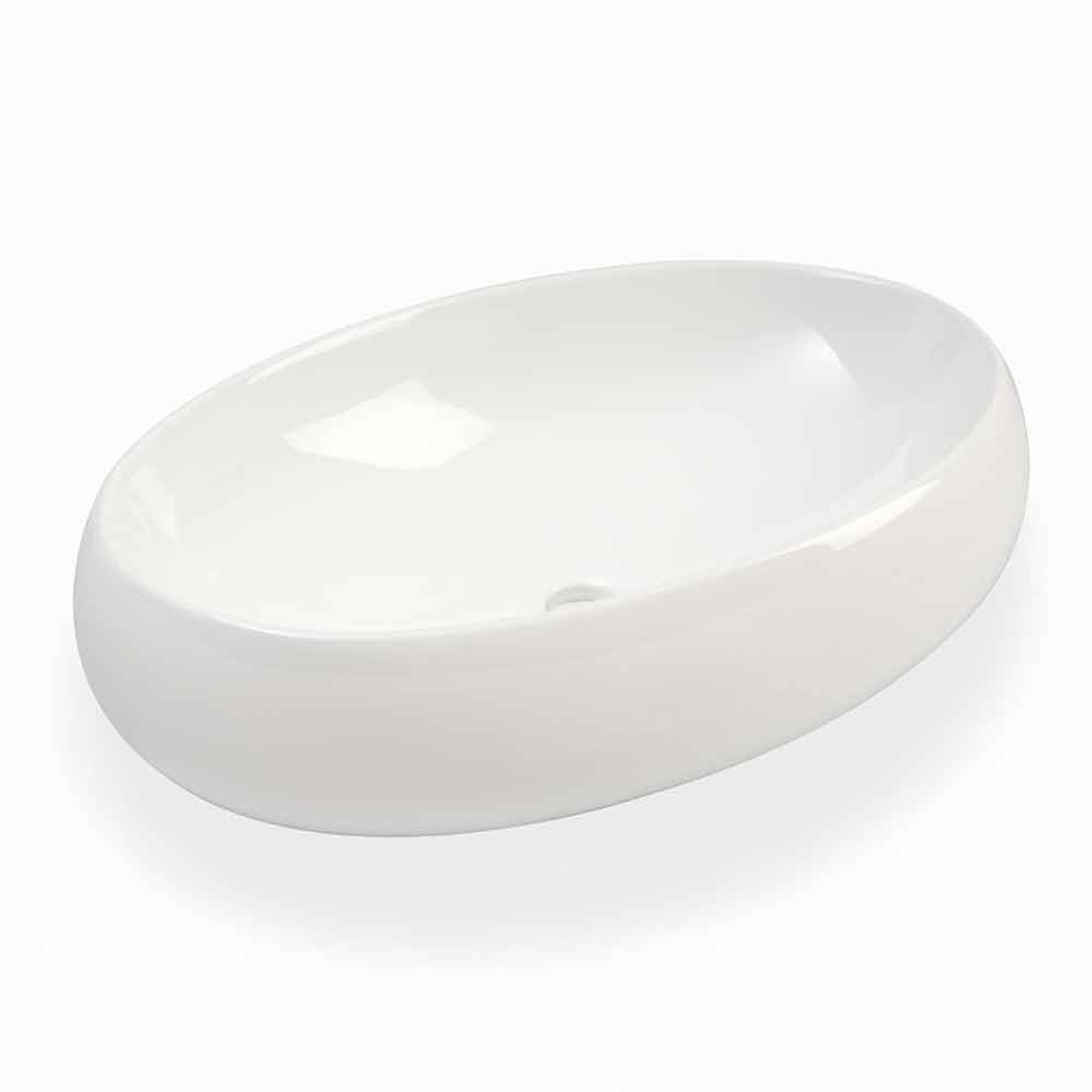 Ovalt tvättställ i modern stil, handgjort i Italien i blank vit keramik.