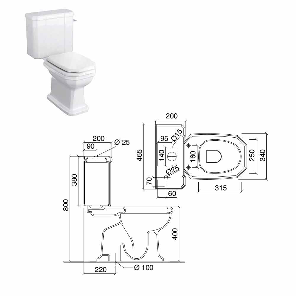 en monoblockbox med lock och dräneringsbatteri med knapp. Detta är en artikel