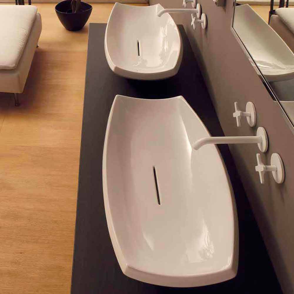 Vitt handfat i keramik i modern design gjord i Italien Laura