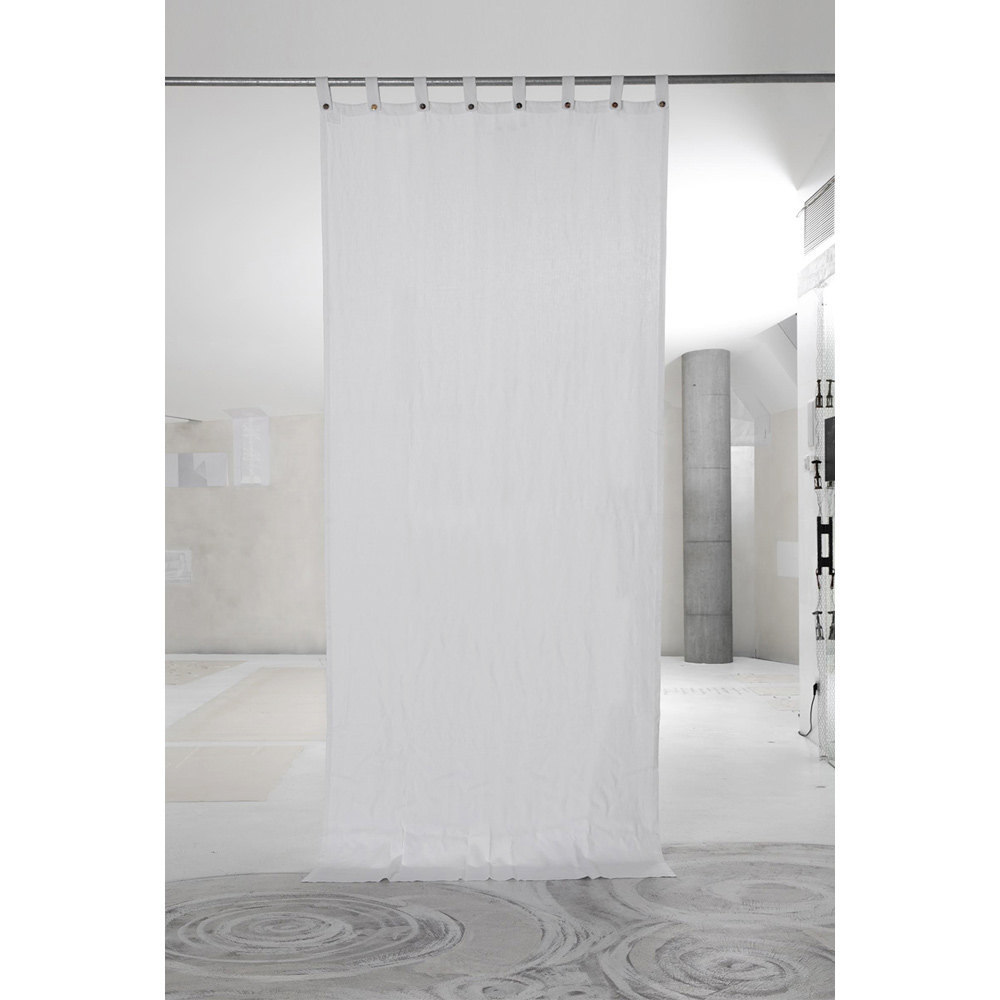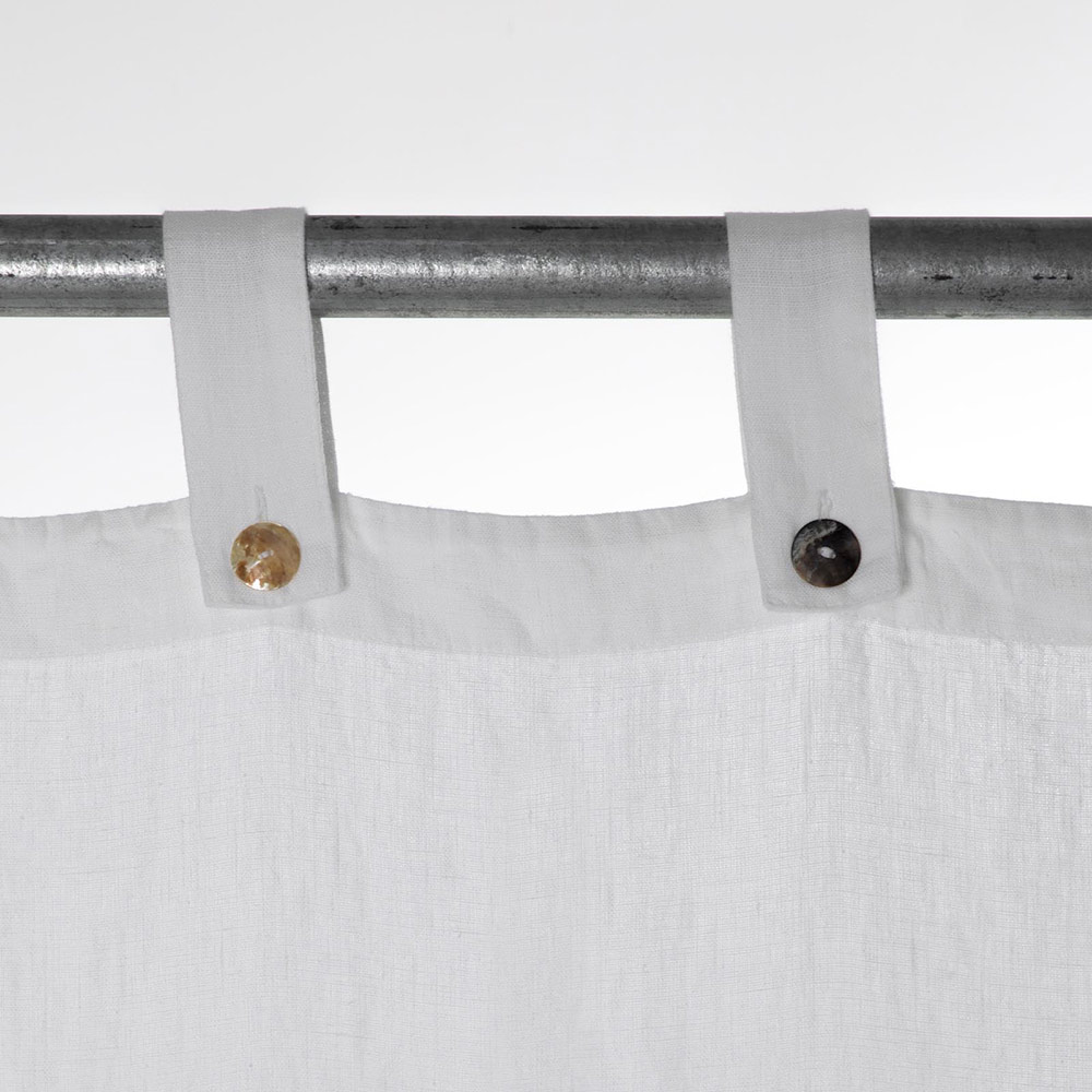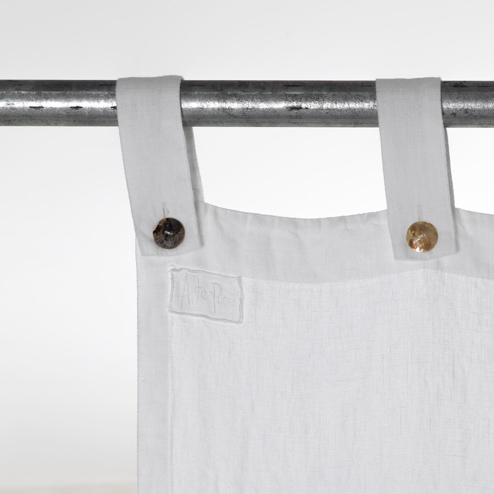 Vit tung linnegardin med knappfäste i elegant design, lyx tillverkad i Italien.