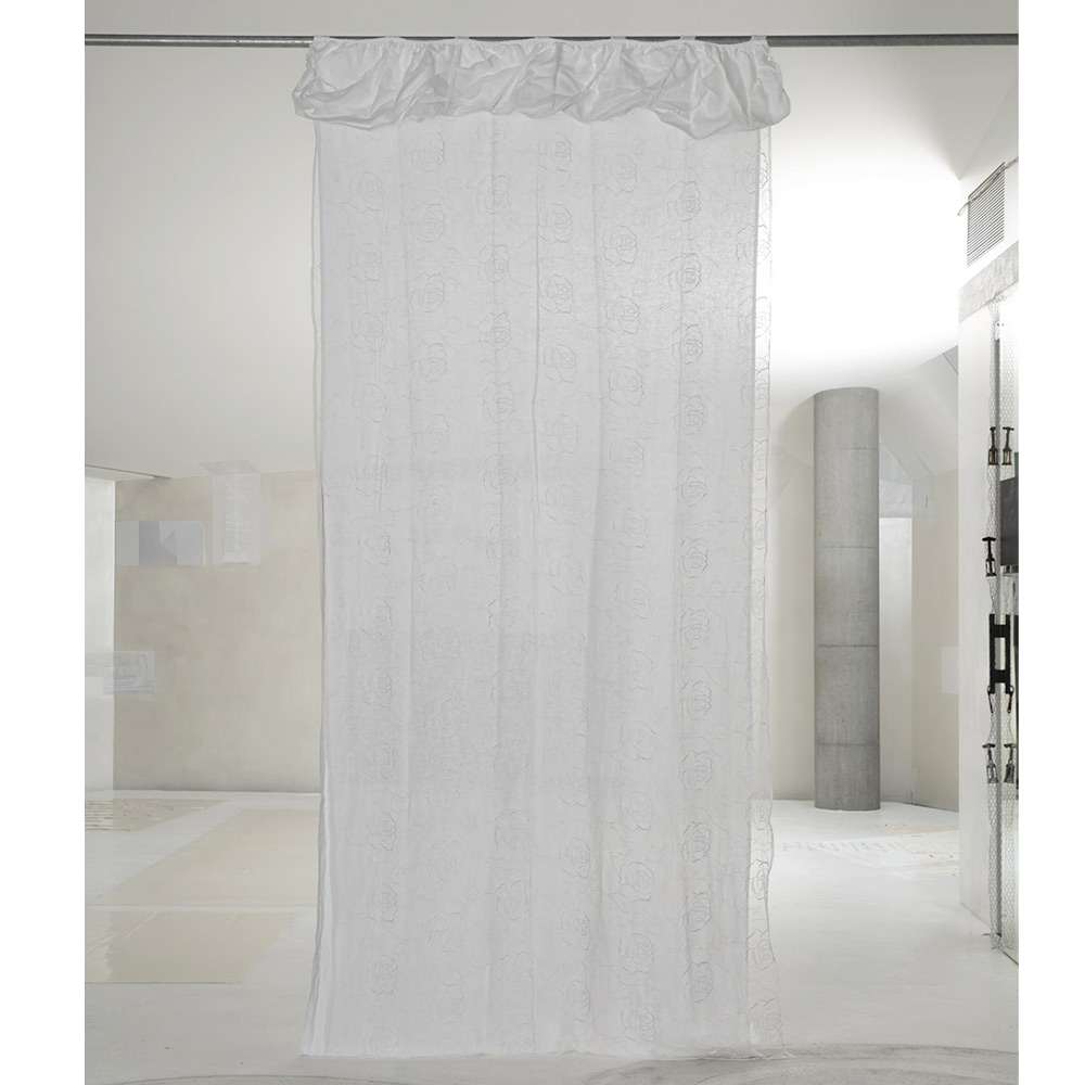 Vit gardin i linnegas och organza med broderade rosor, elegant design tillverkad i Italien.