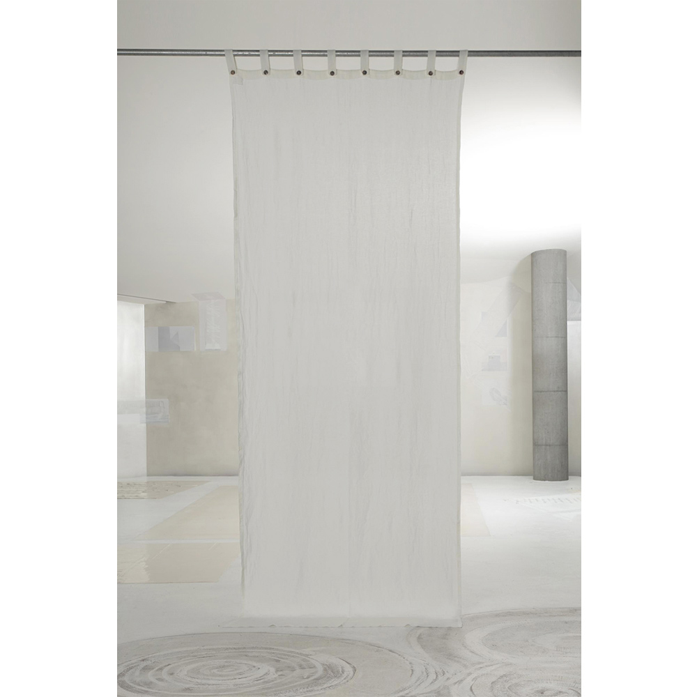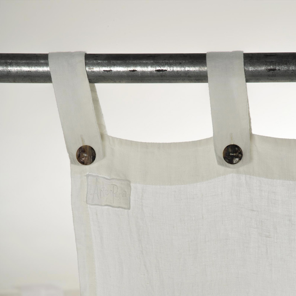 Vit tung linnegardin med pärlemor knappfäste, handgjord kvalitet tillverkad i Italien.