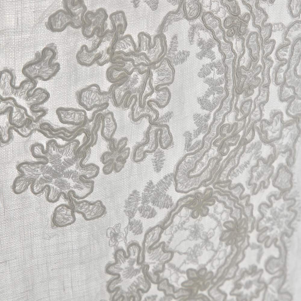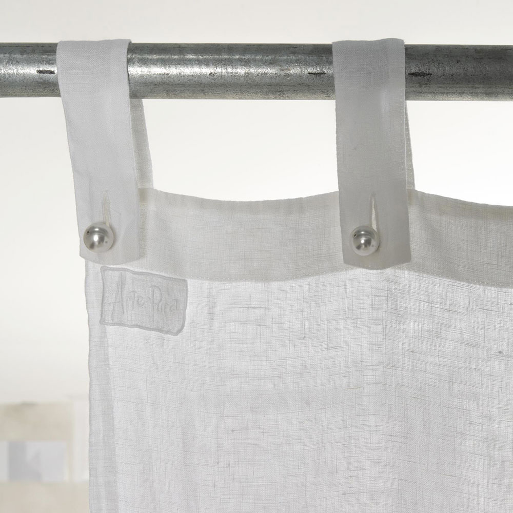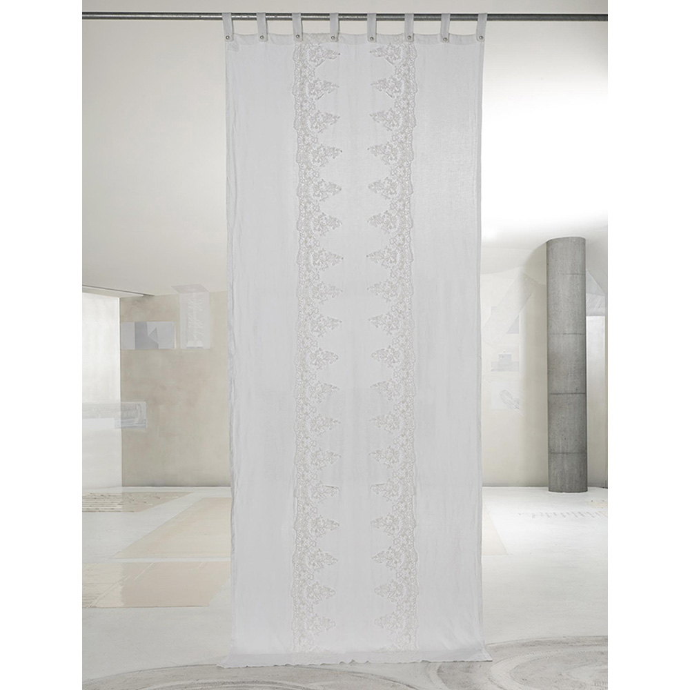 Vit gardin i ljust linne med central spets av elegant dekor, handgjord kvalitet tillverkad i Italien.