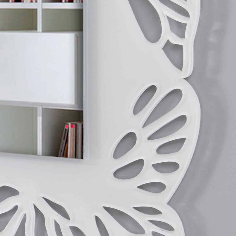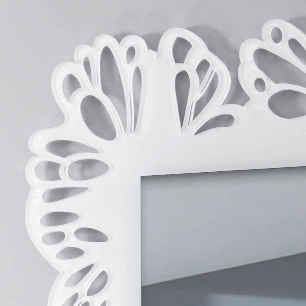 Rektangulär väggspegel med vit dekorerad ram, i modern designplexiglas tillverkad i Italien.