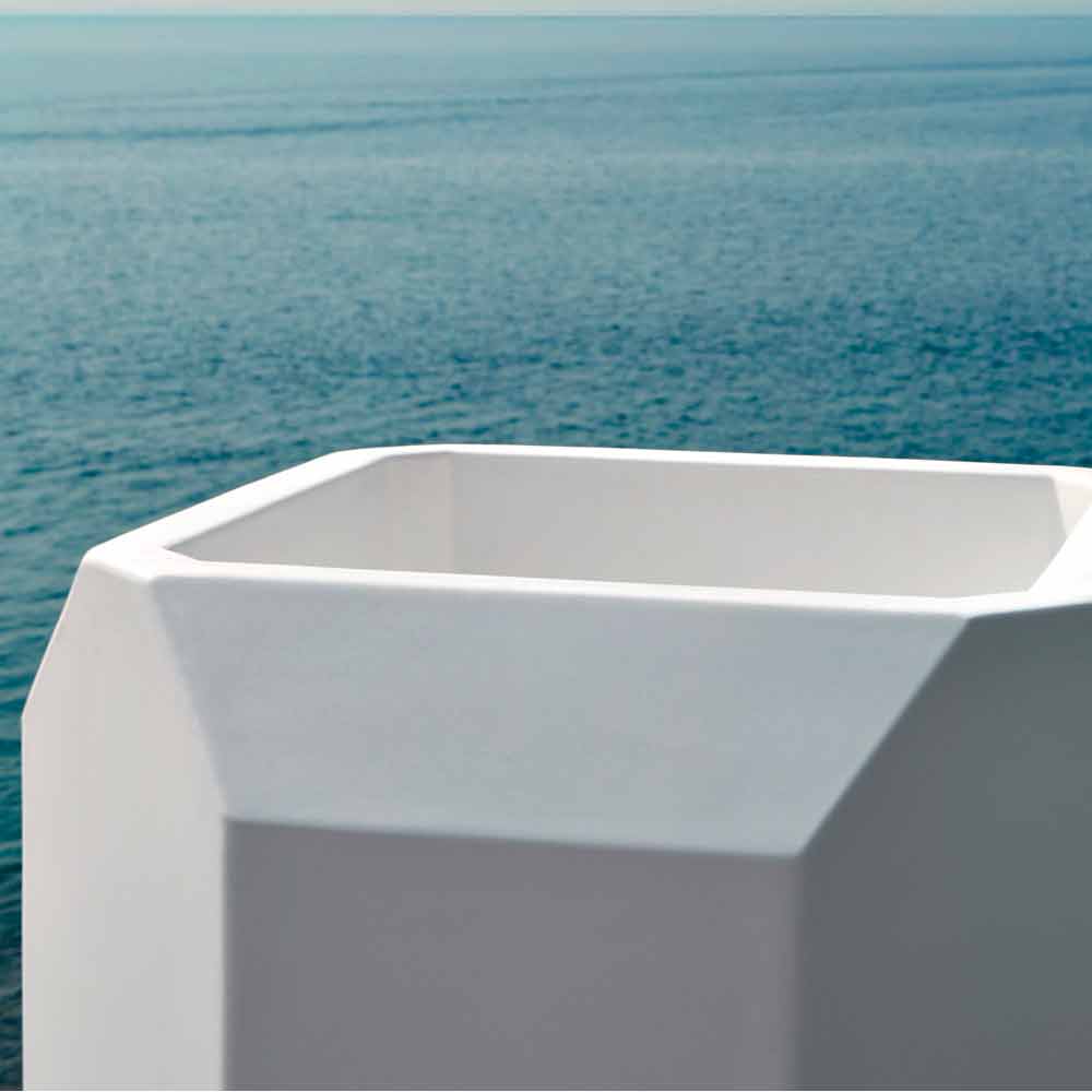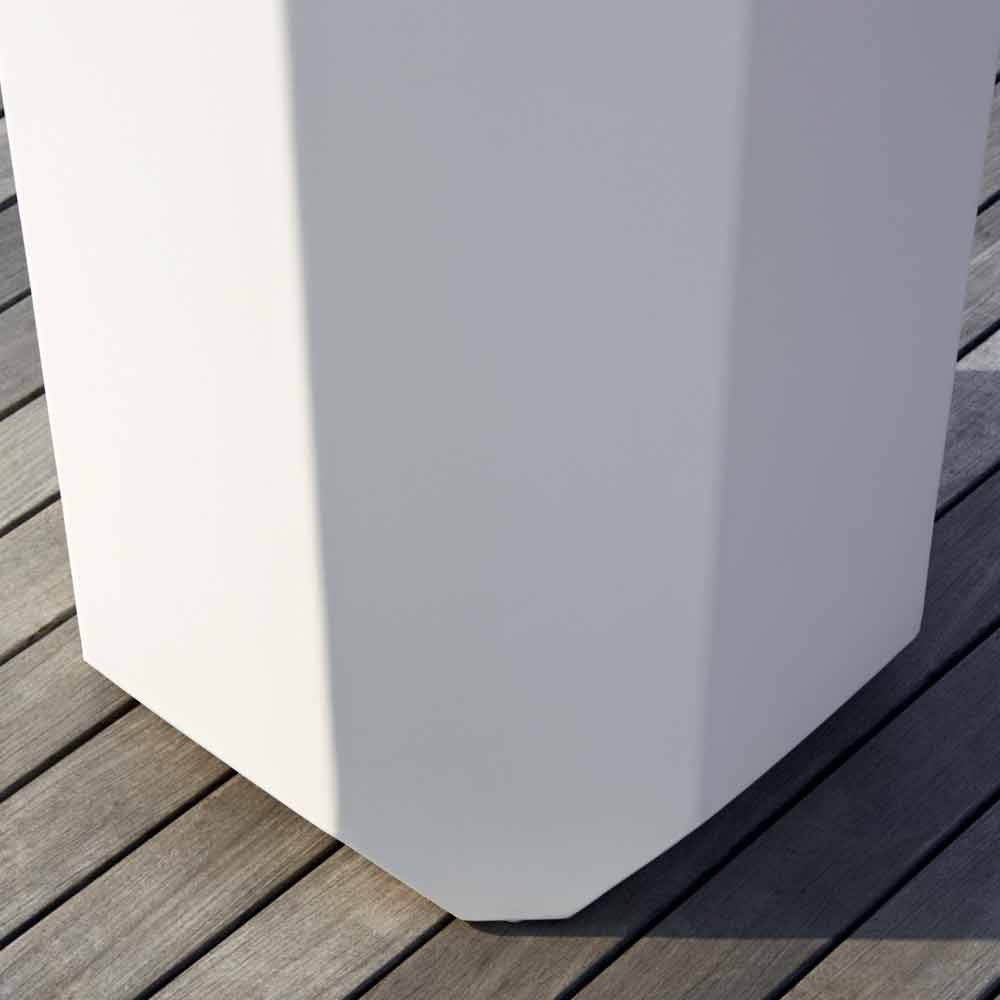 Inspirerad av skärning av ädelstenar har den en Poleasy-struktur i en vit yta som tål UV-strålar och utan ytporositet.