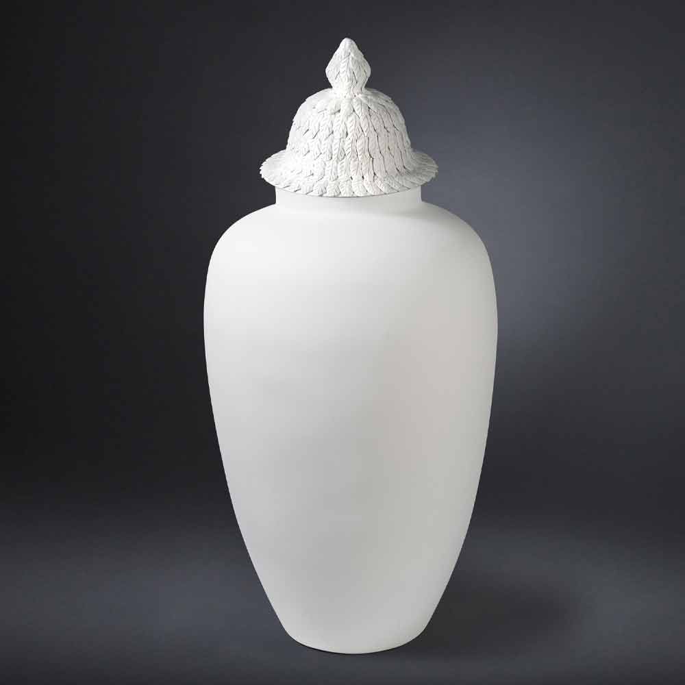 Hög dekorativ vas i vit keramik handgjord i Italien, hög kvalitet.