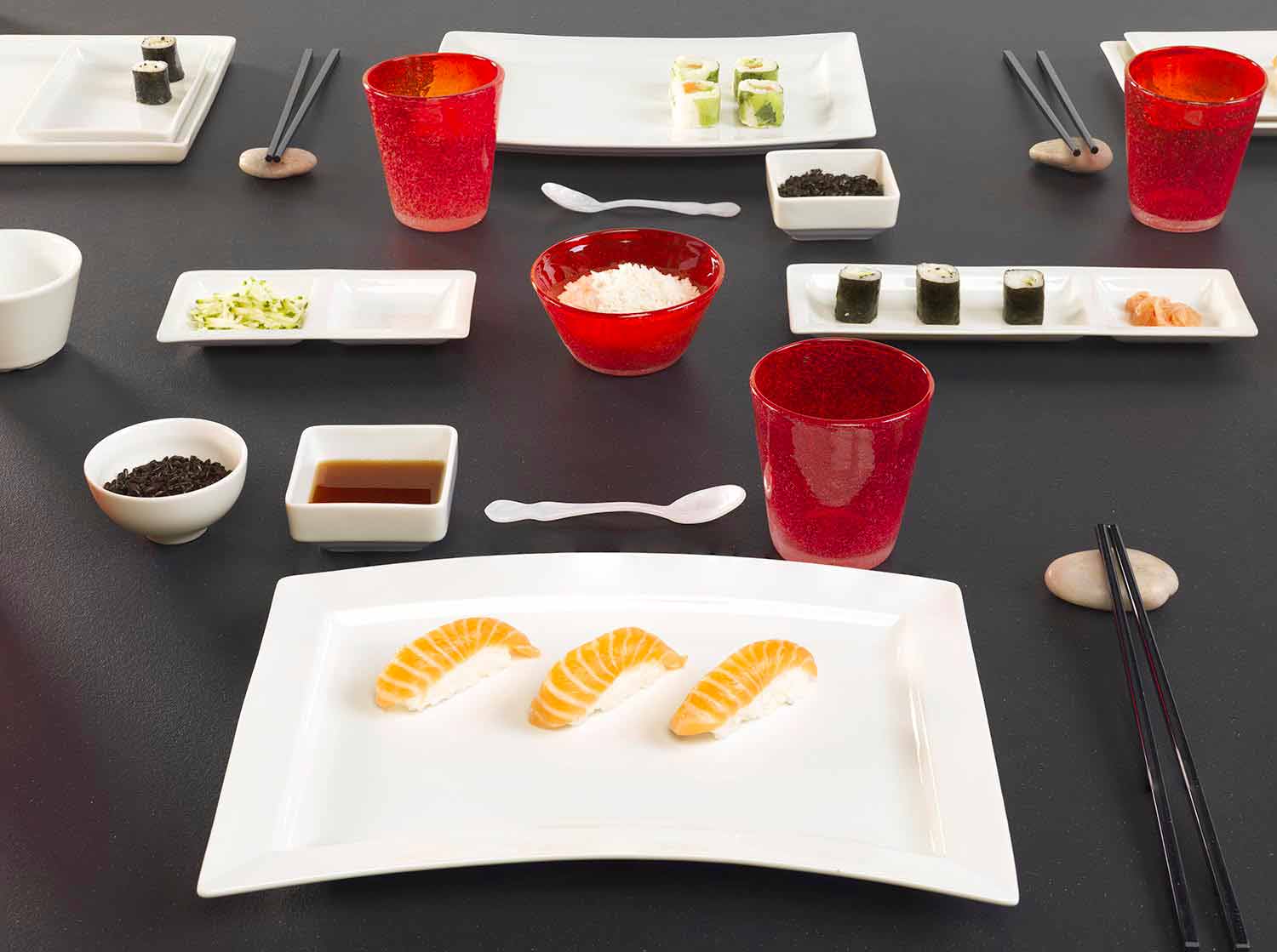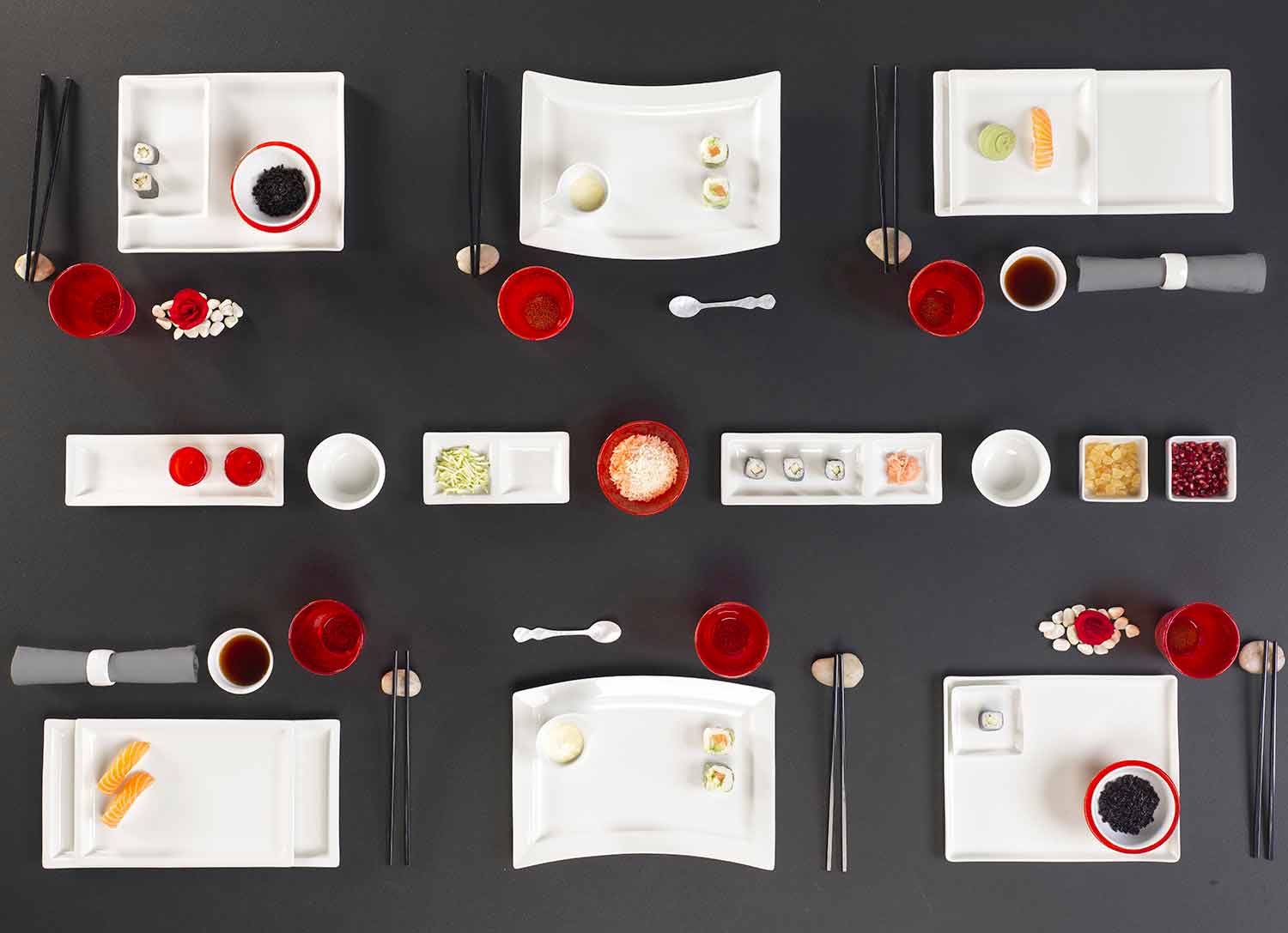 asiatisk minimalism och för att anpassa sig efter ordningen till den mat de välkomnar, vilket ger vid måltidens tid känslor av välbefinnande.