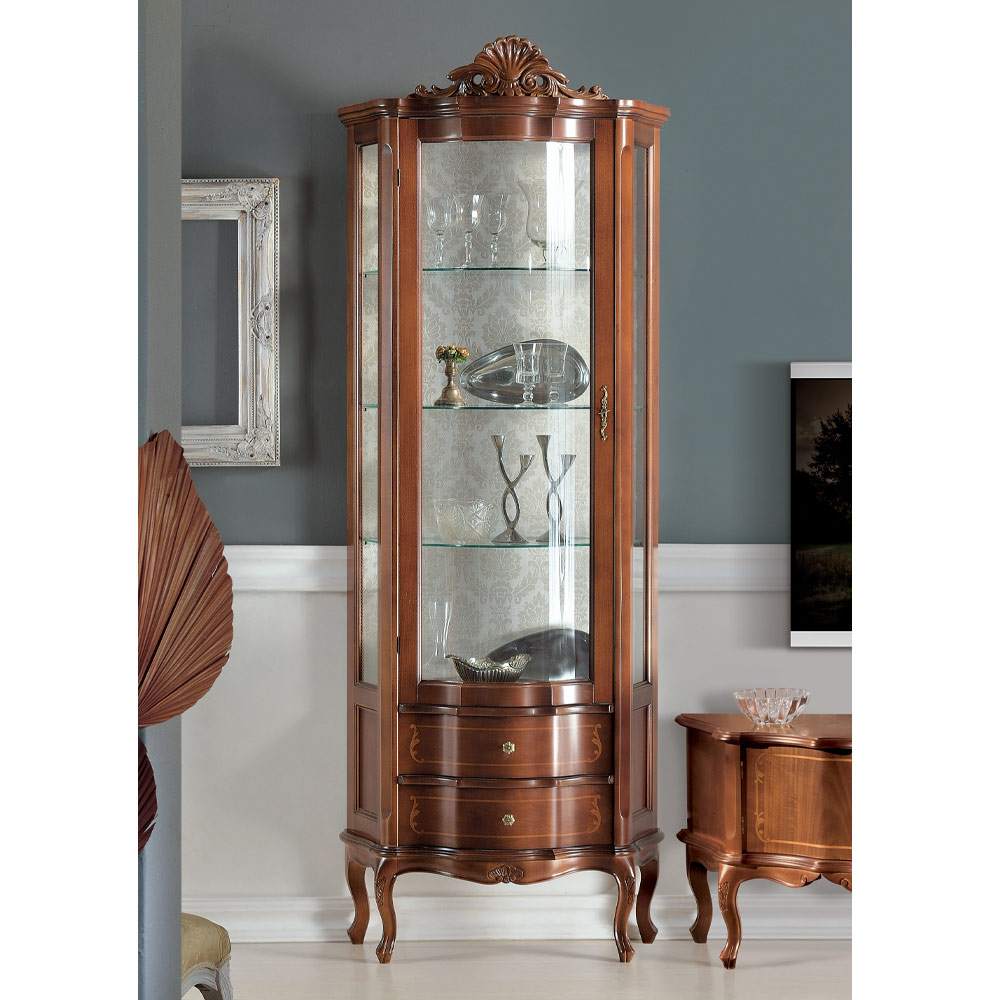Vardagsrums vitrinskåp med dörr och 2 lådor i trä Tillverkat i Italien.