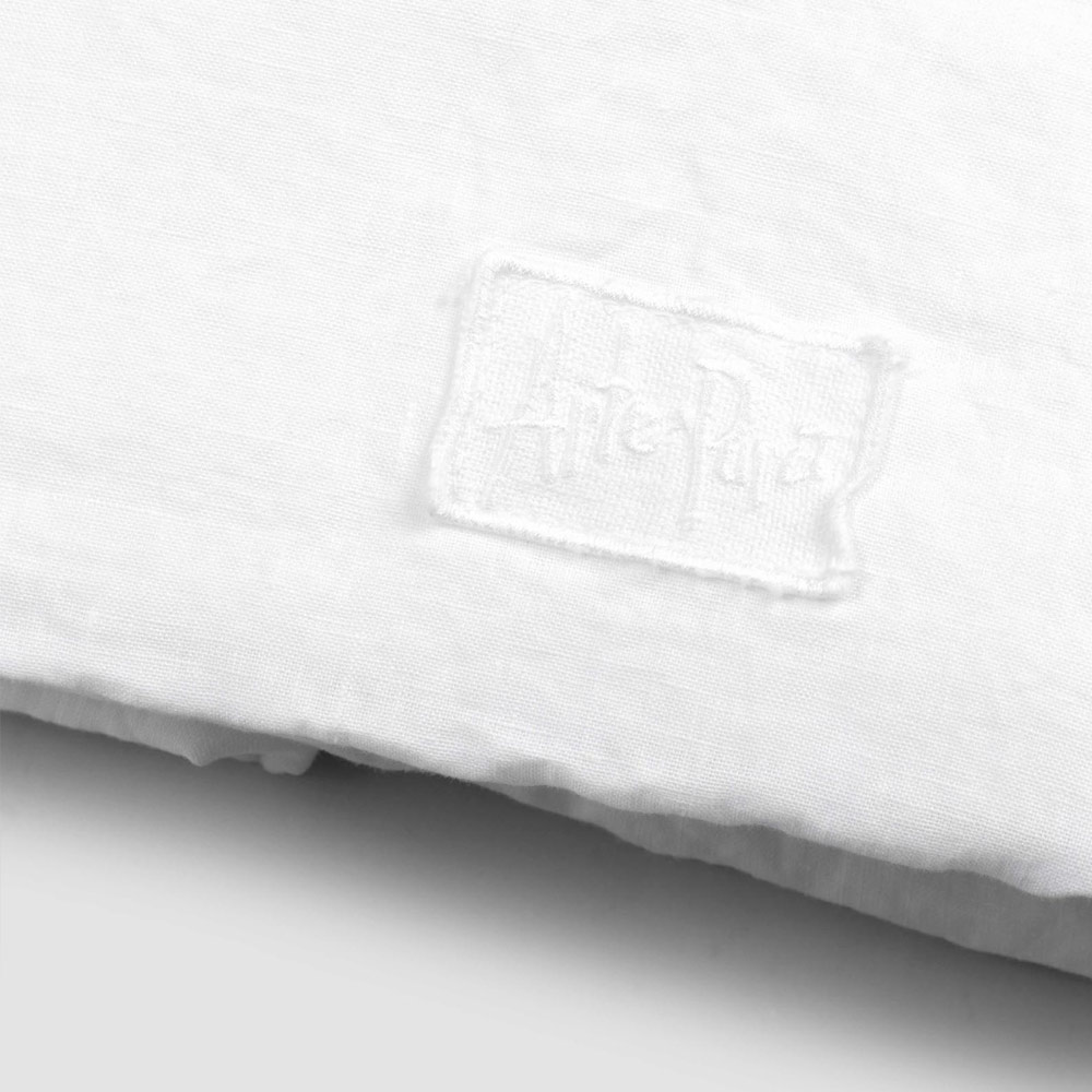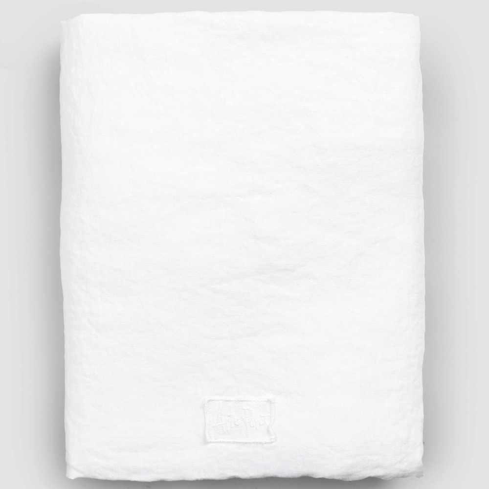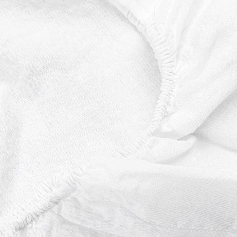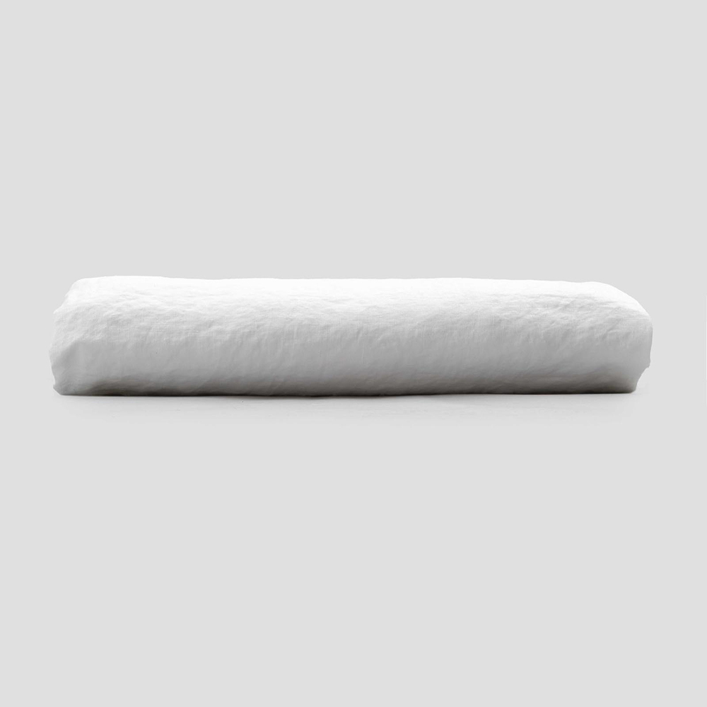 Inbyggt lakan för dubbelsäng i rent vitt linne, lyxigt designhantverk tillverkat i Italien.